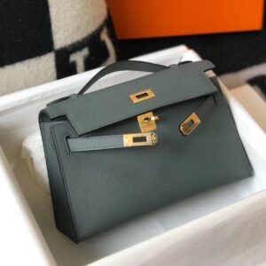Hermes Kelly Pochette Bag In Vert Amande Epsom Leather