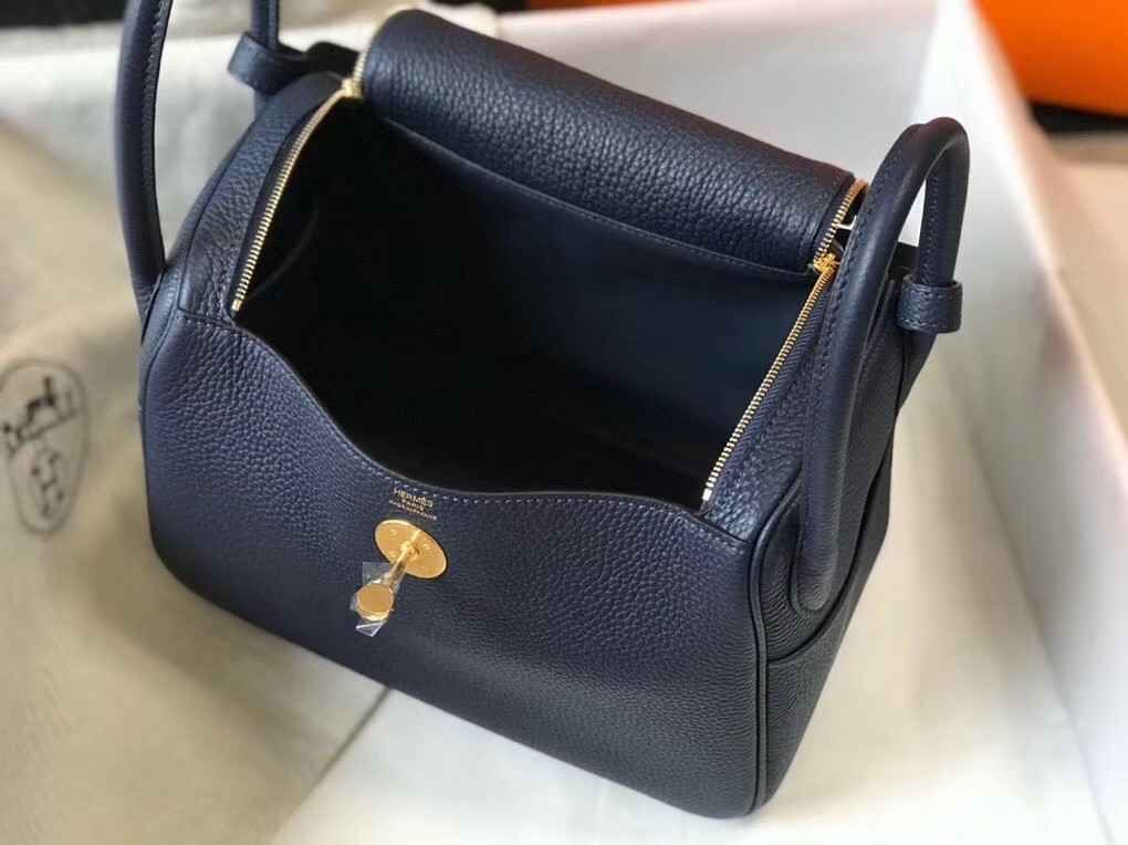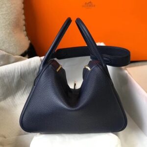Hermes Lindy 26cm Bag In Navy Blue Clemence With GHW
