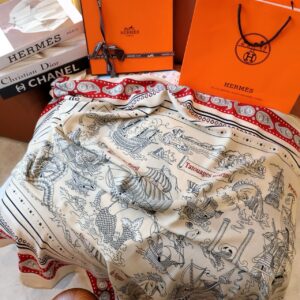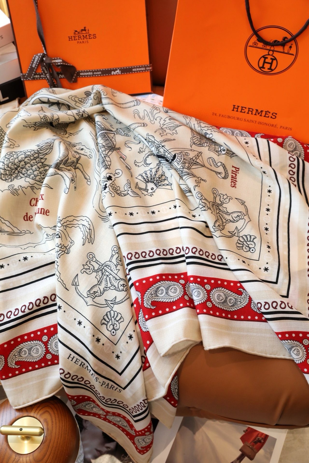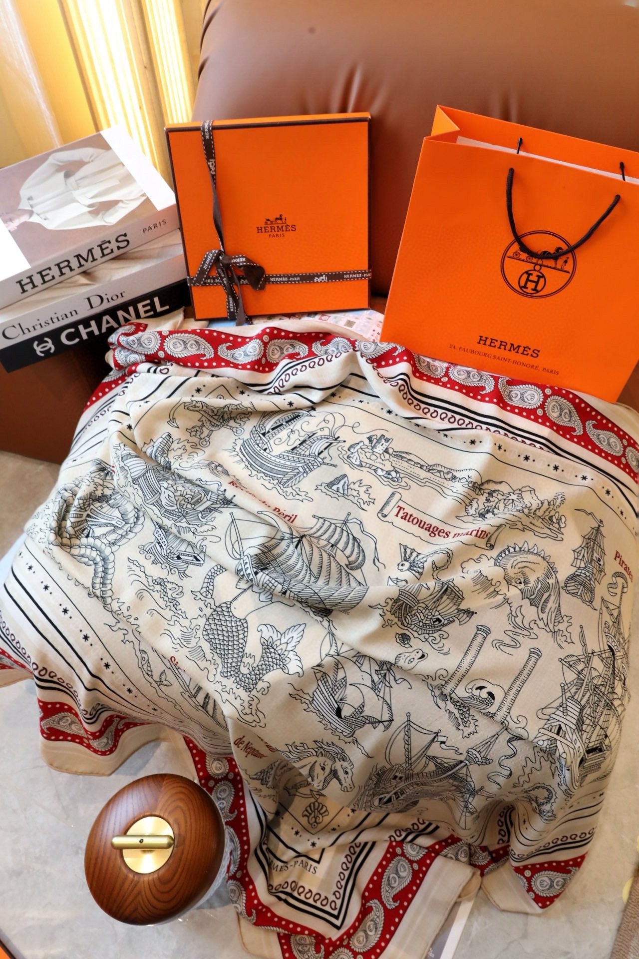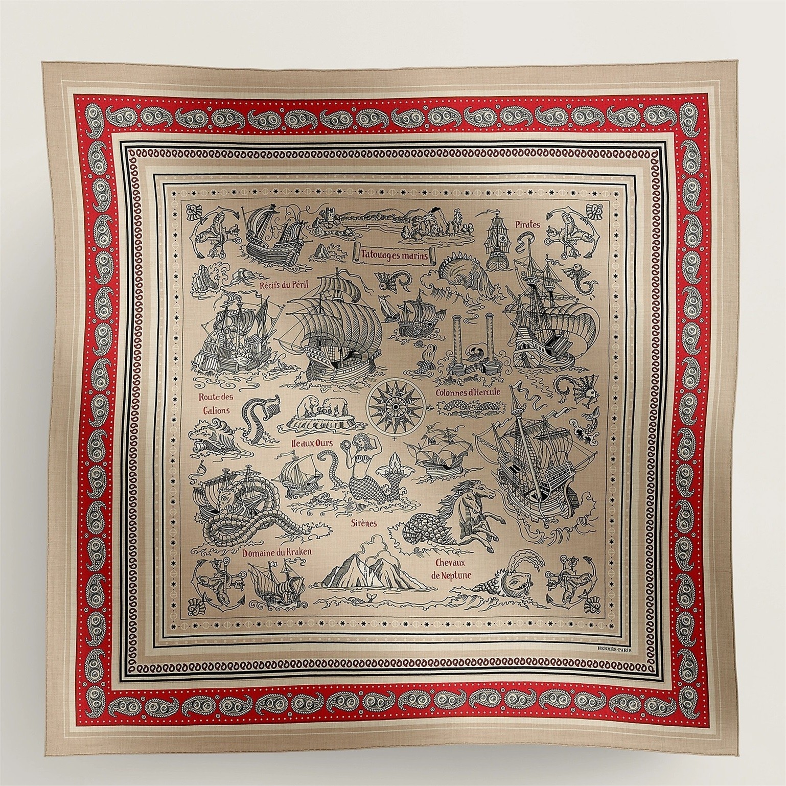 Hermes Naturel Tatouages Marins Bandana Shawl 140