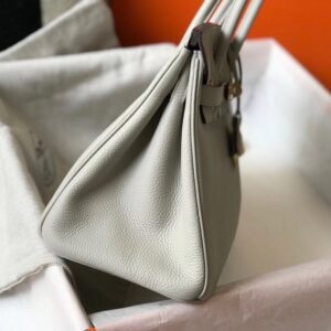 Hermes Pearl Grey Clemence Birkin 30cm Bag GHW