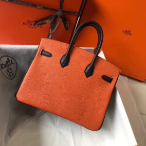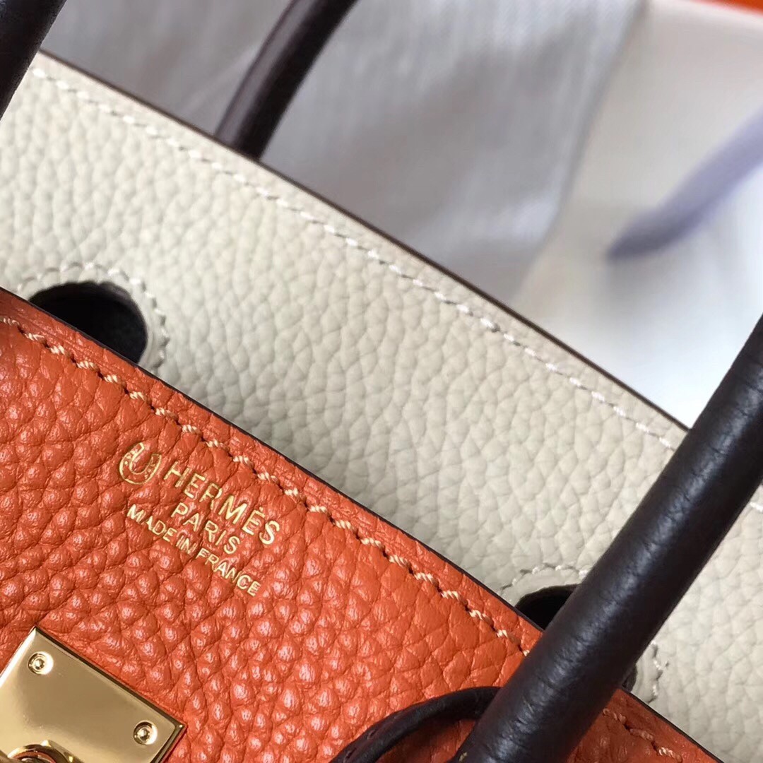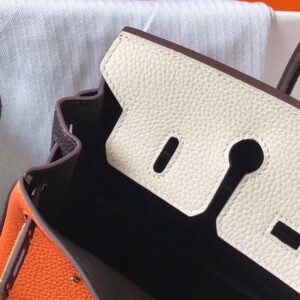 Hermes Tri-Color Birkin 25cm Bag In Orange/White/Black Clemence Leather