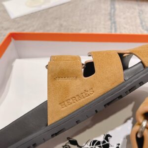 Hermes Women’s Chypre Sandals In Brown Suede Calfskin