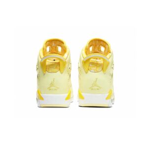 Made exclusively for kids, the Air Jordan 6 Retro GG ‘Citron Tint’ updates the classic silhouette with a leather upper finished in a monochromatic pale yellow hue. Perforated detailing offers ventilated comfort, while a molded spoiler at the heel is good for easy on and off. Atop the tongue, an embroidered yellow rose is superimposed by a black Jumpman logo. Additional floral designs make their way to the collar lining and interior tongue.