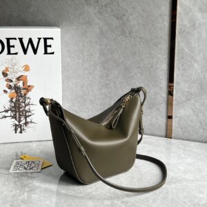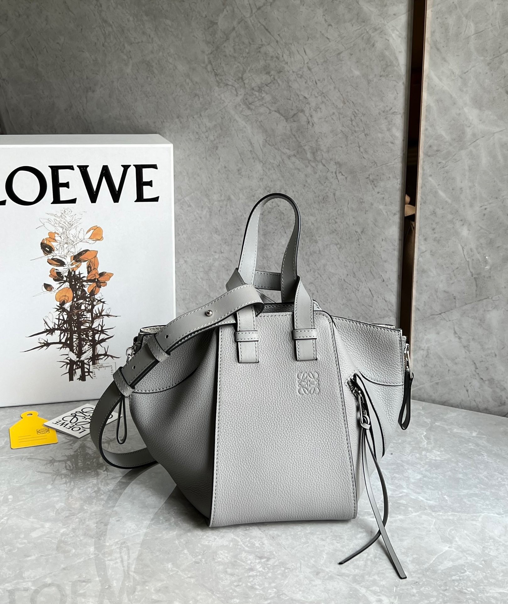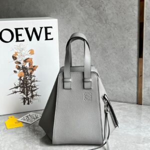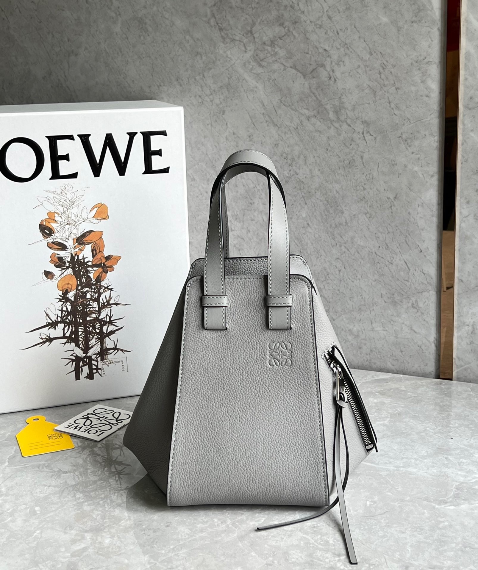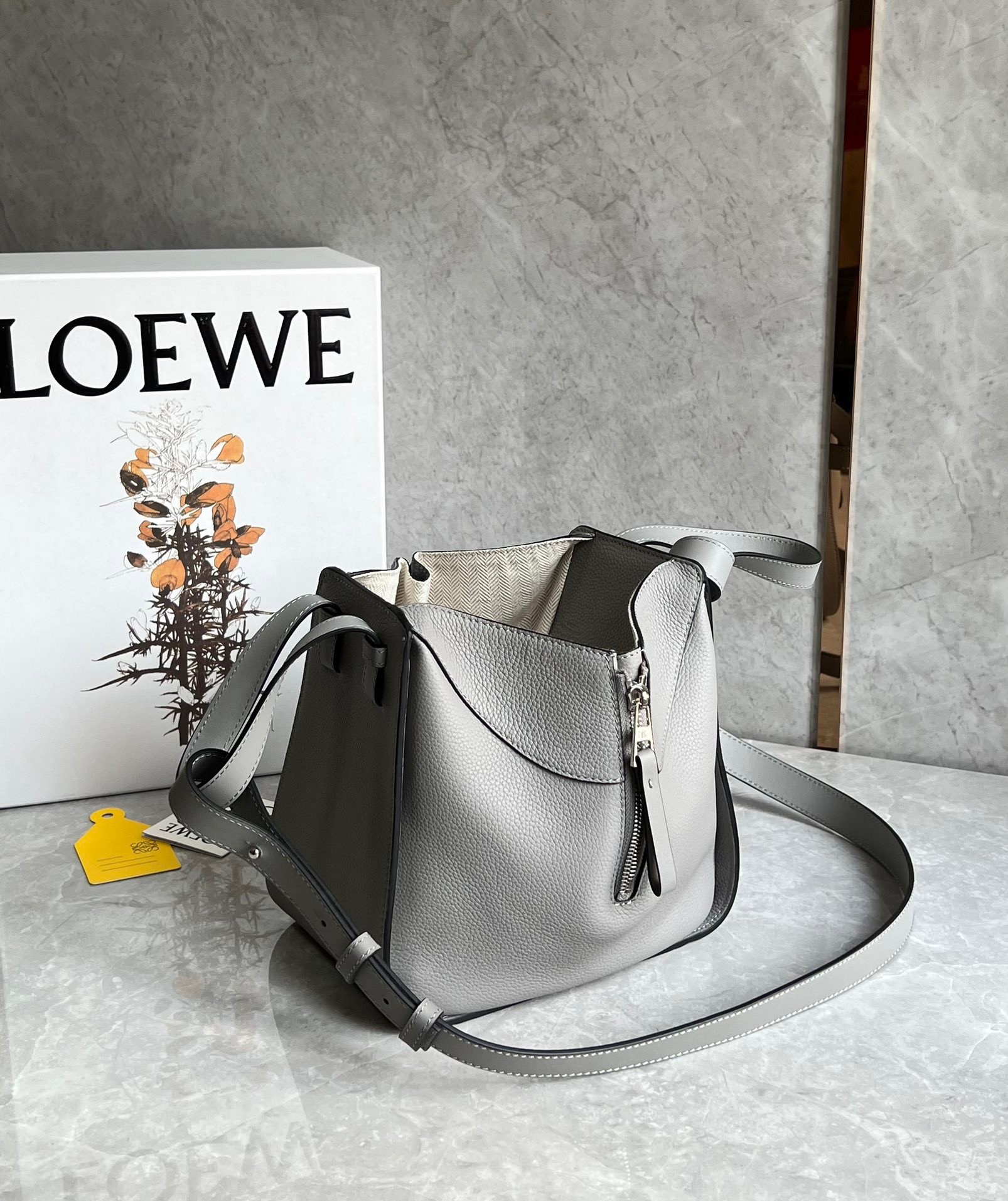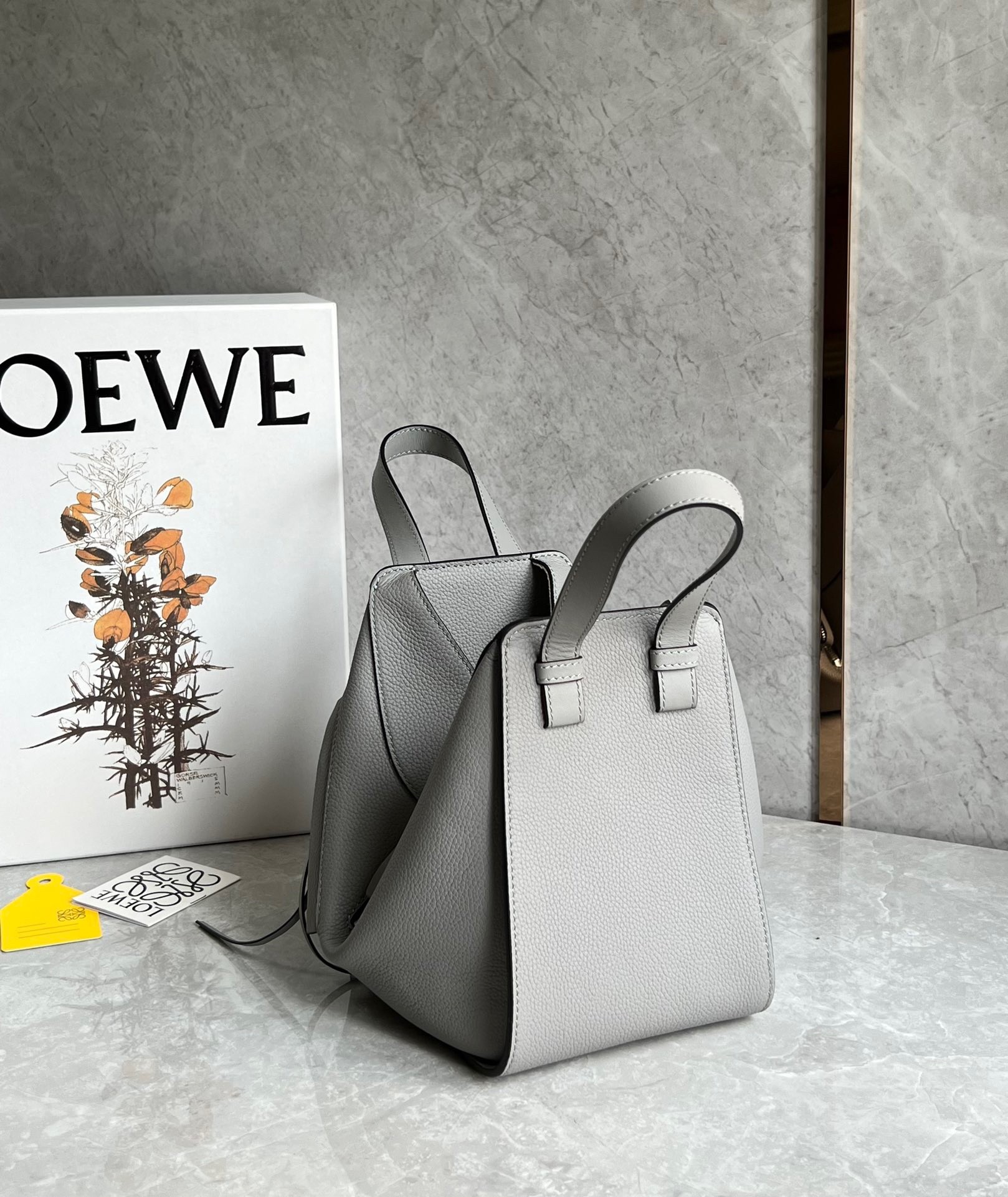 Loewe Compact Hammock Bag in Pearl Grey Grained Calfskin