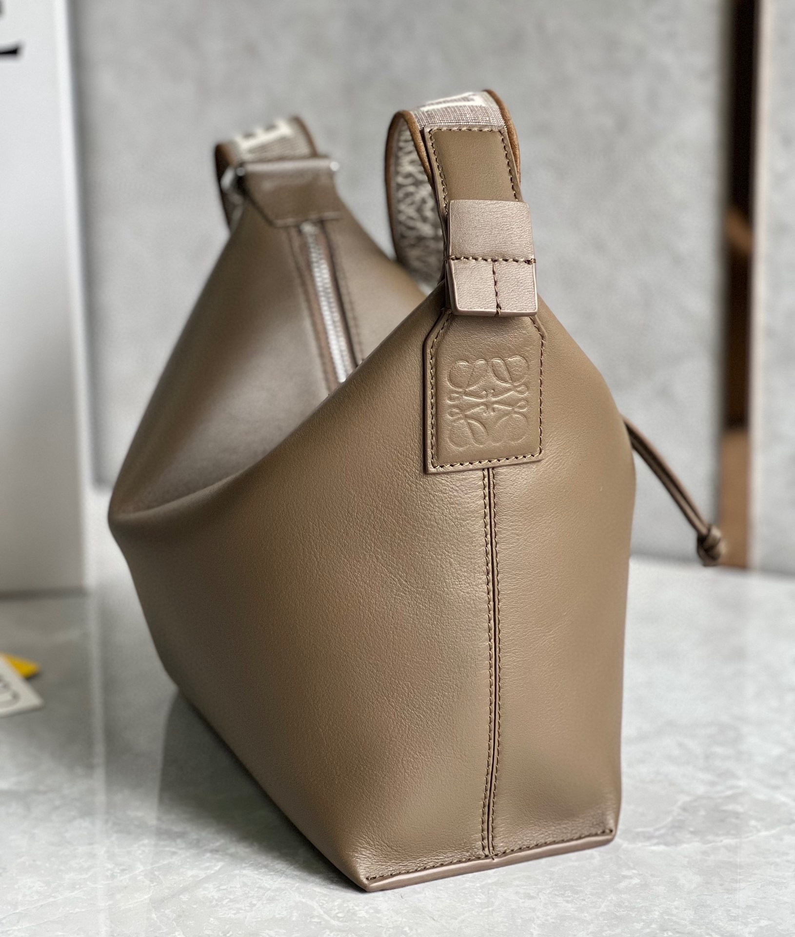 Loewe Cubi Small Bag in Winter Brown Calfskin and Jacquard
