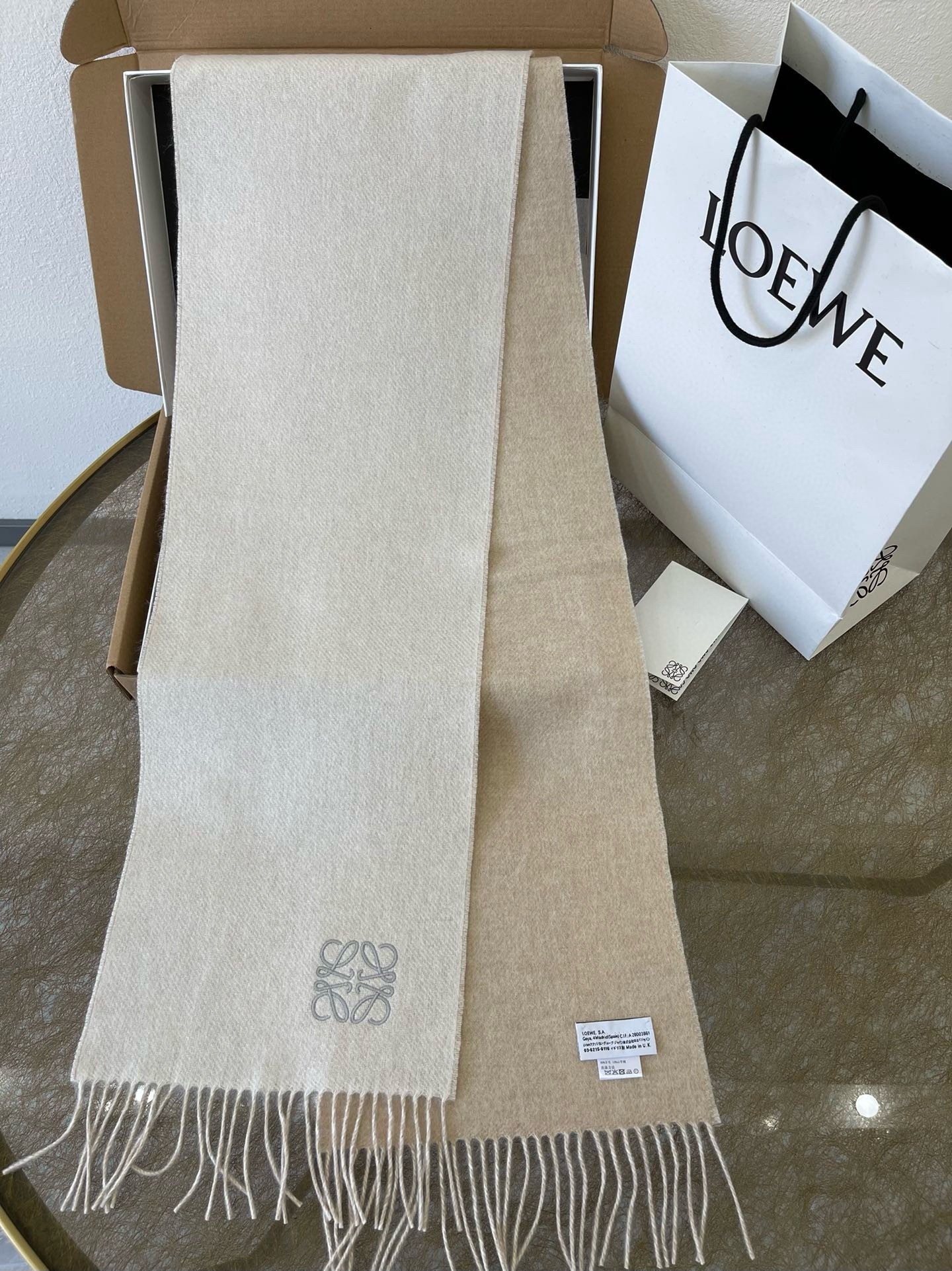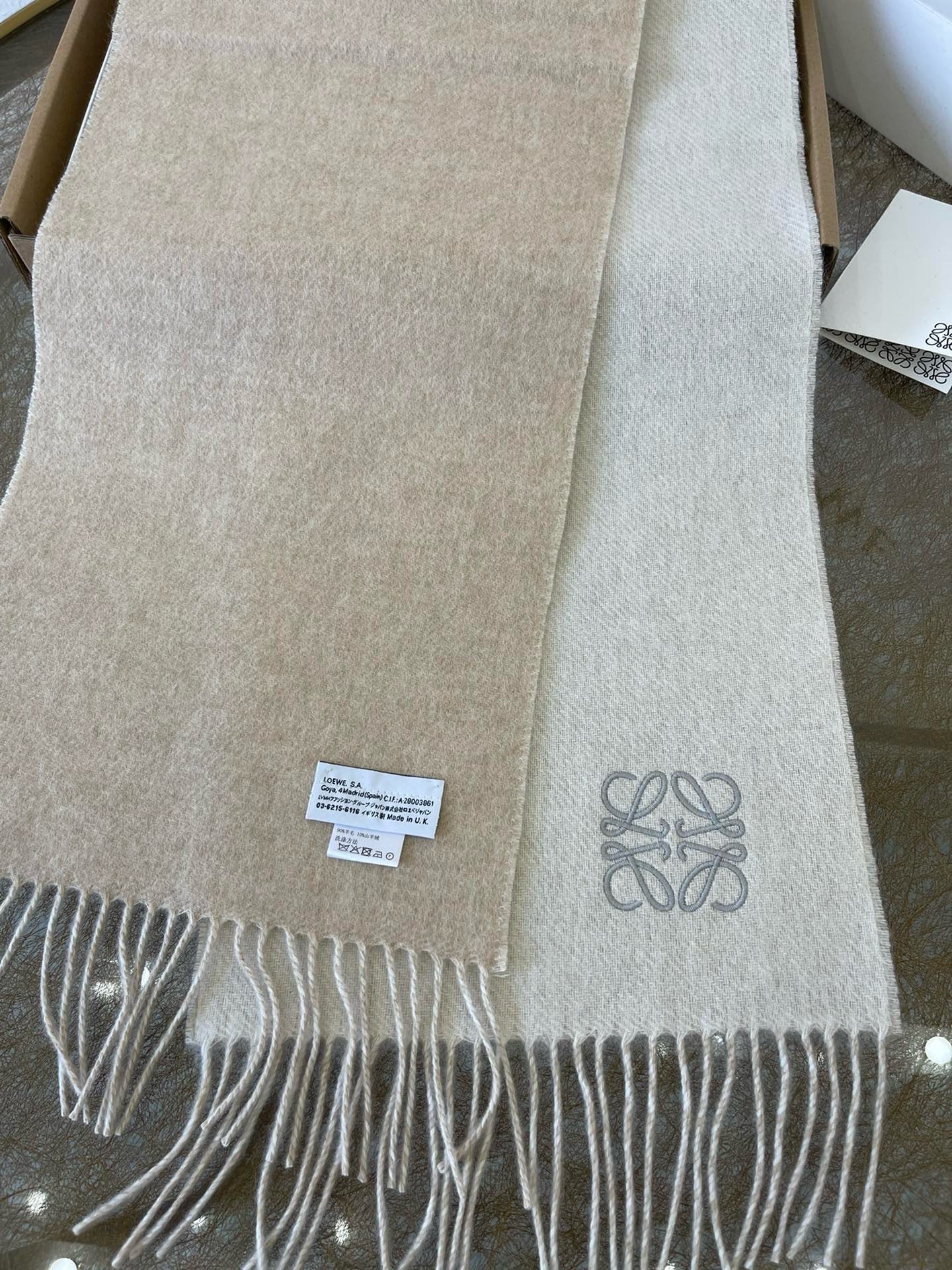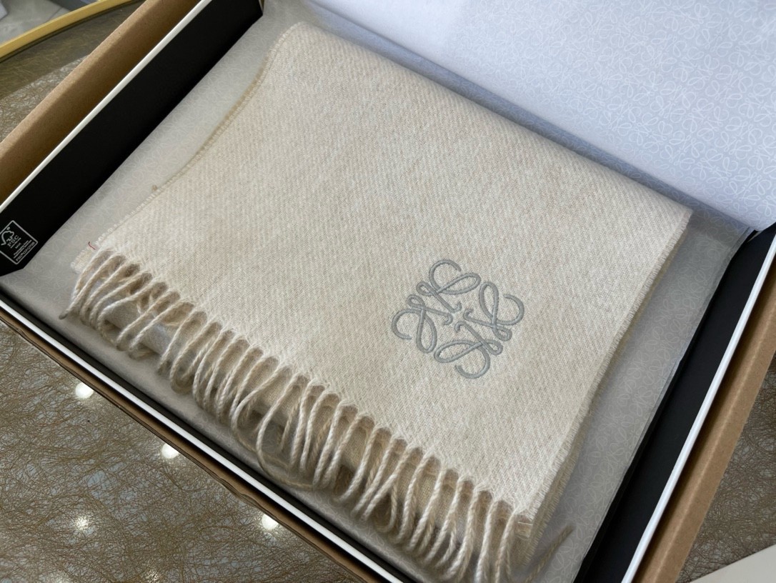Loewe Double Face Scarf in Ivory/Sand Wool and Cashmere