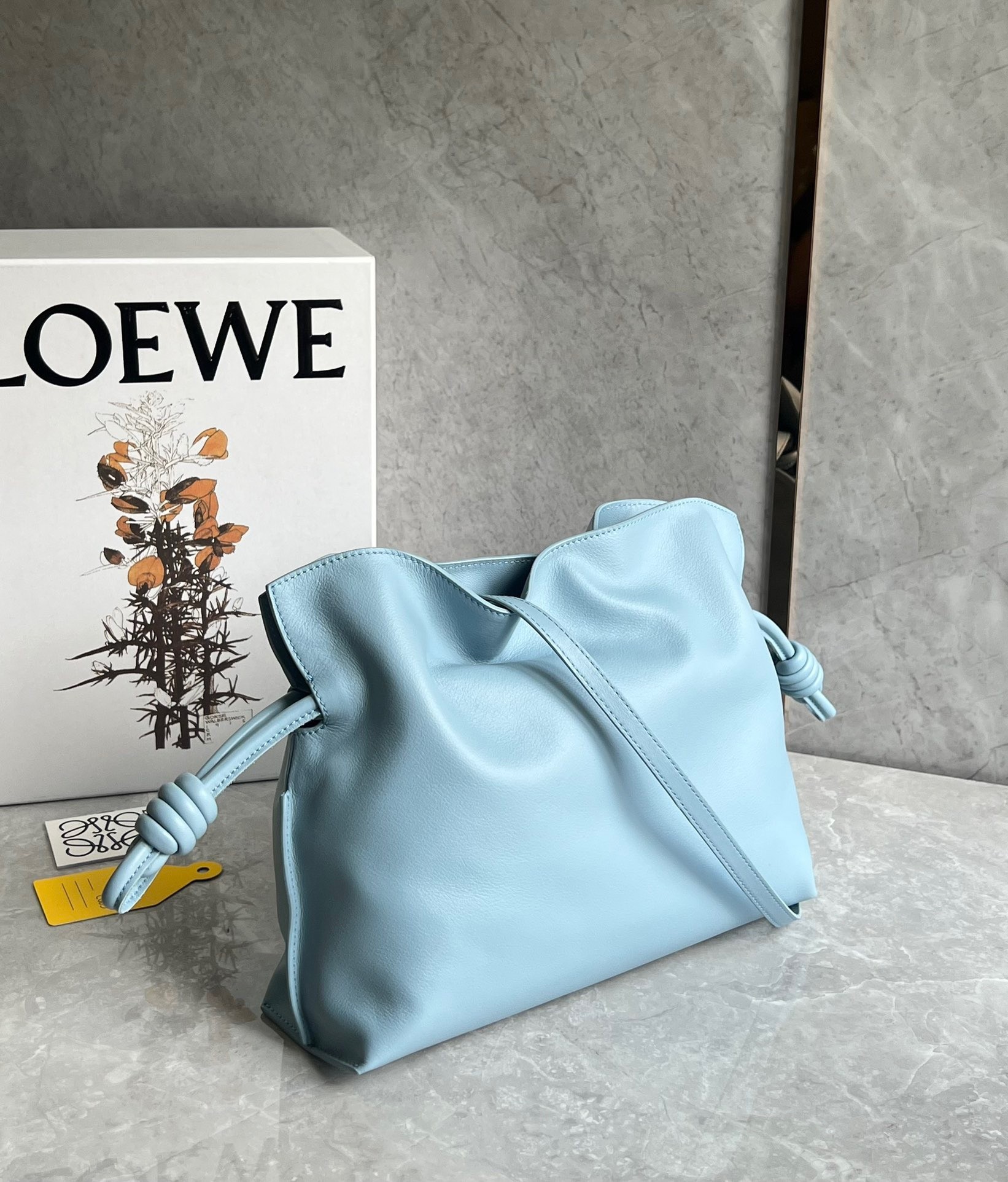 Loewe Flamenco Clutch Bag In Dusty Blue Calfskin