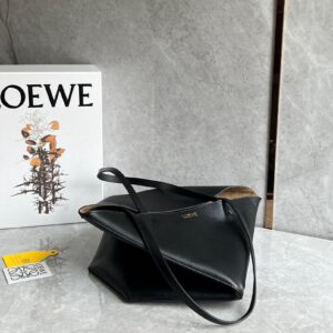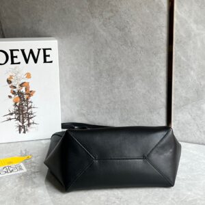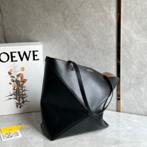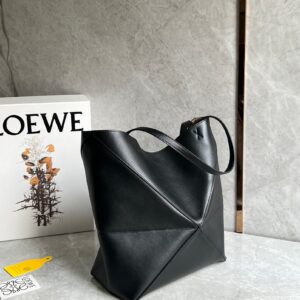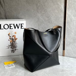 Loewe Medium Puzzle Fold Tote Bag in Black Calfskin