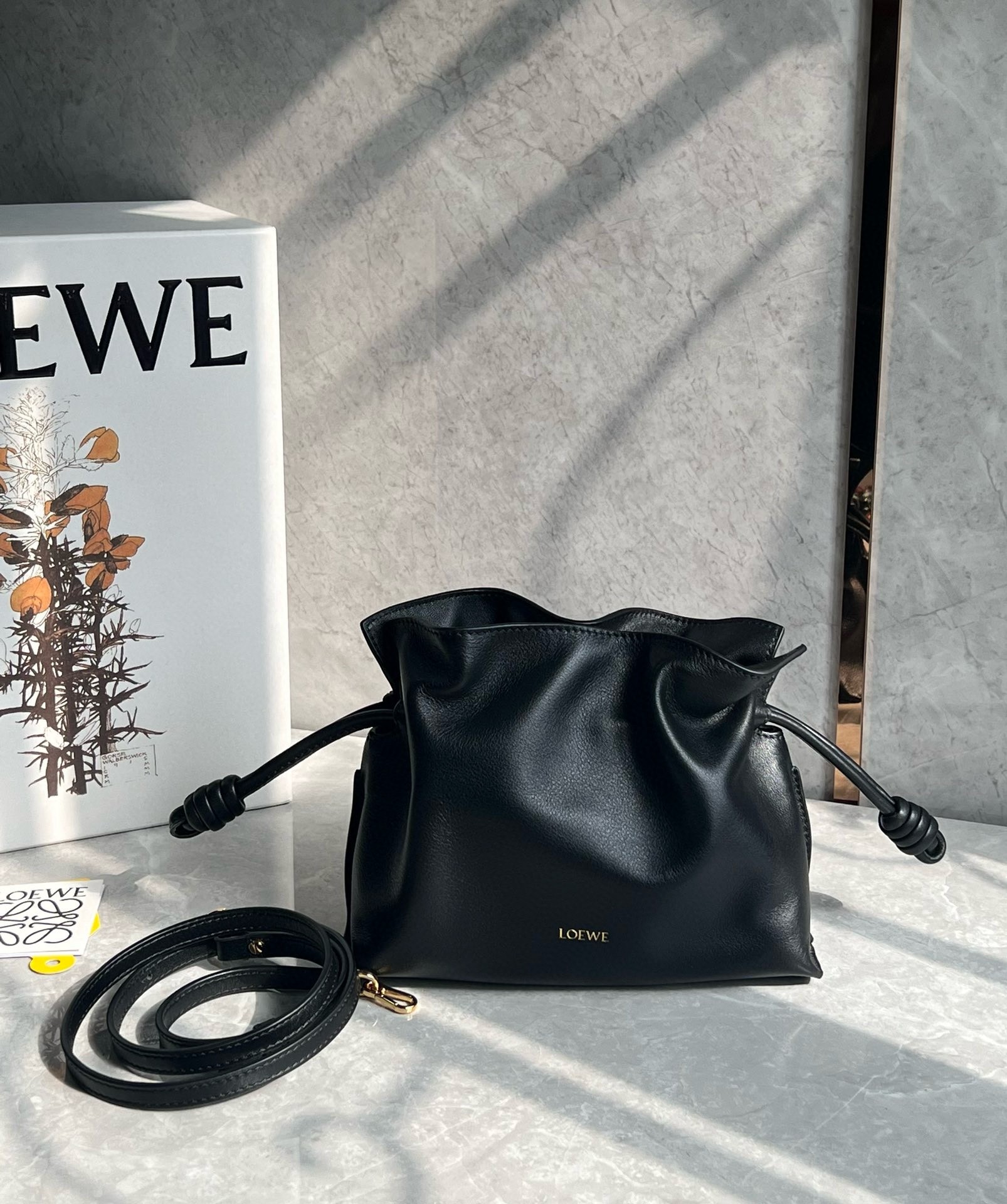 Loewe Mini Flamenco Clutch Bag in Black Nappa Calfskin