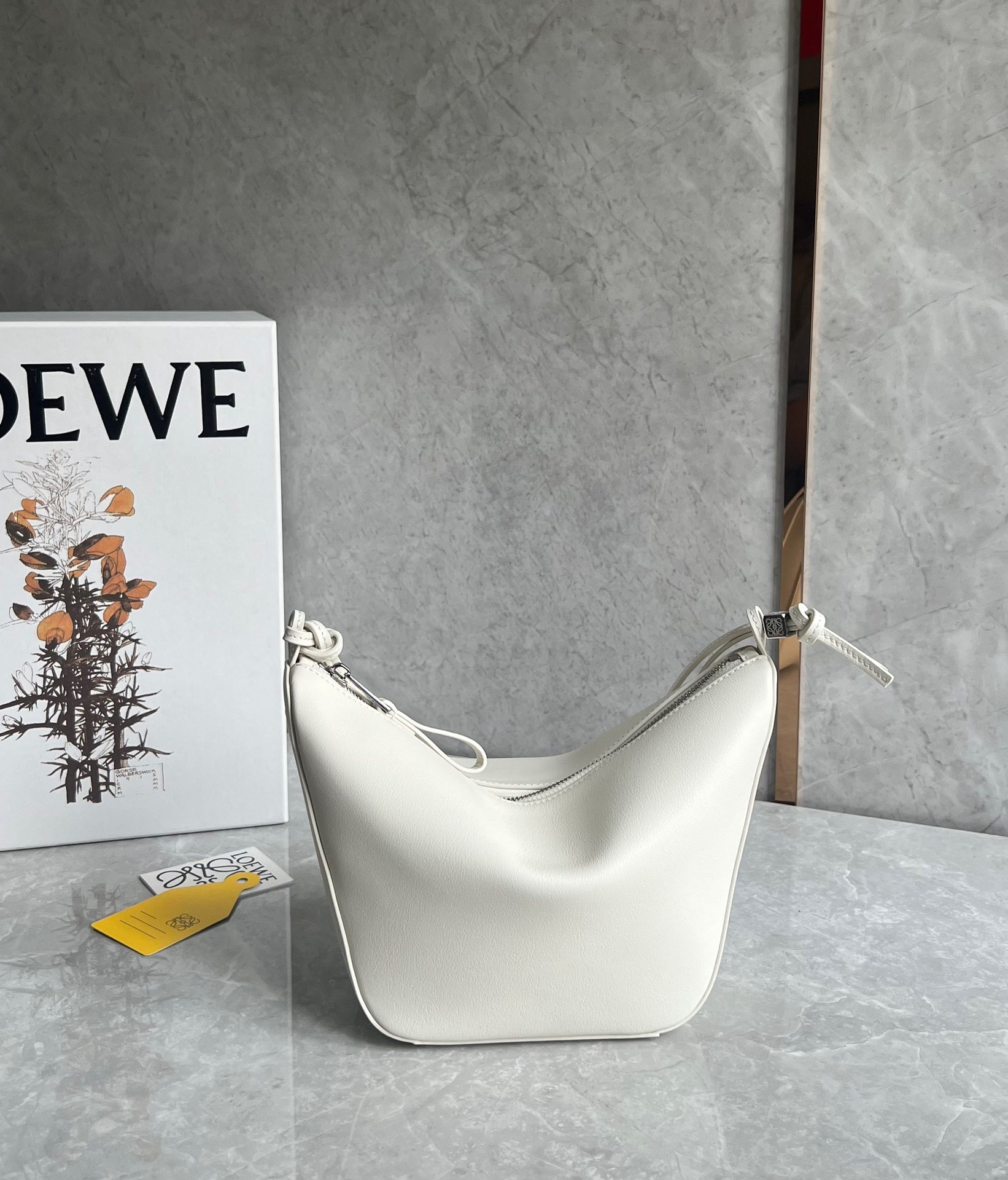 Loewe Mini Hammock Hobo Bag in White Calfskin