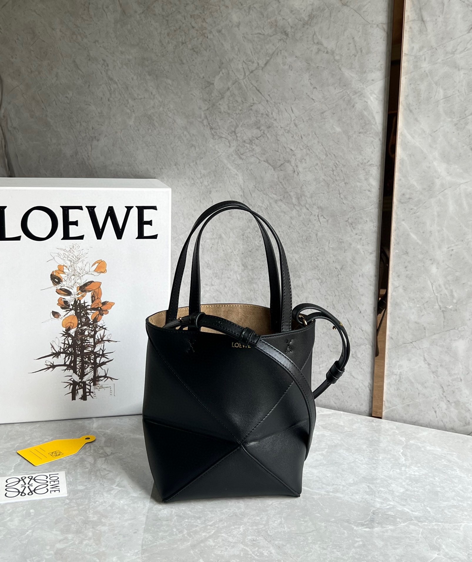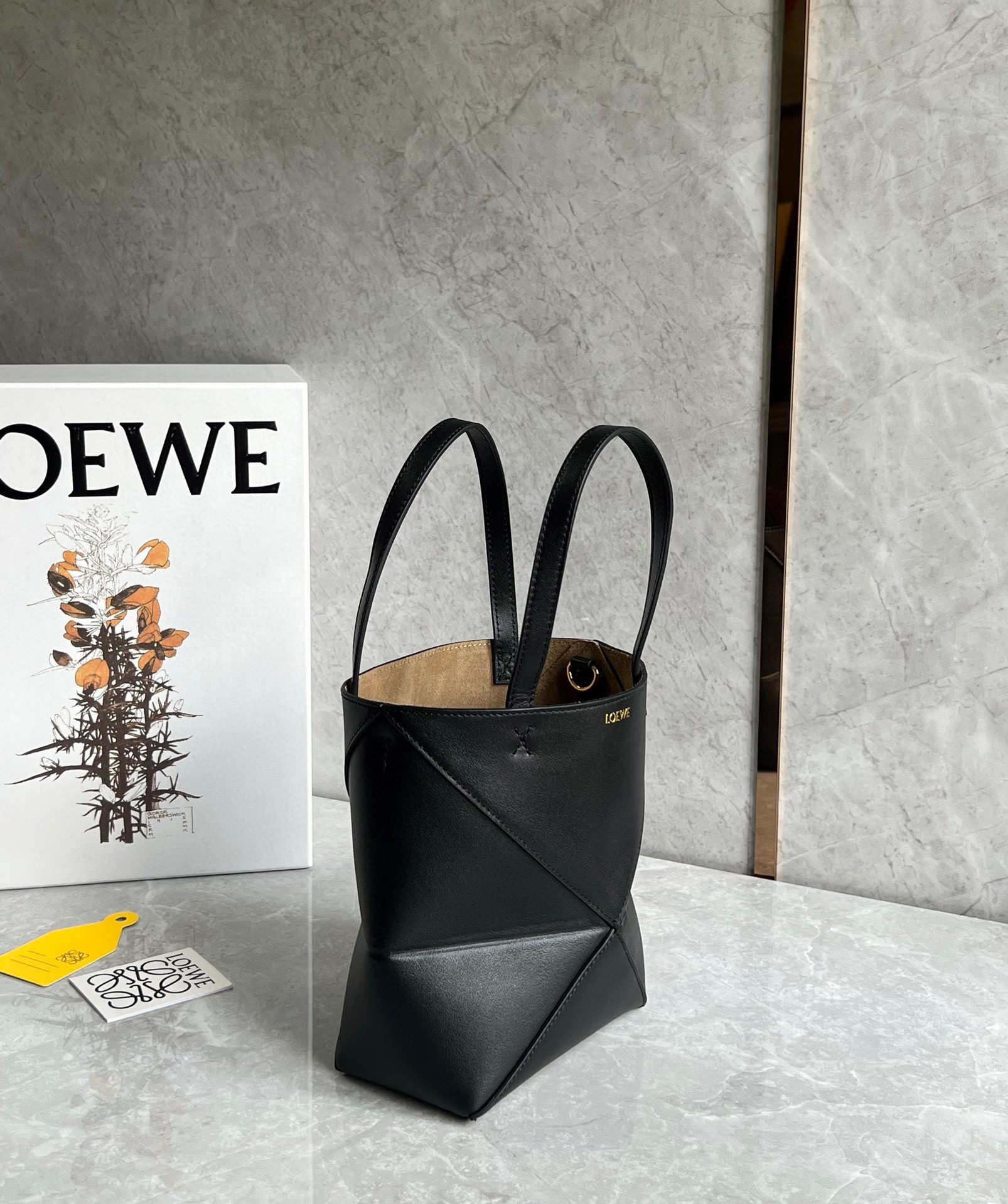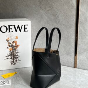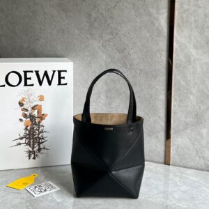 Loewe Mini Puzzle Fold Tote Bag in Black Calfskin