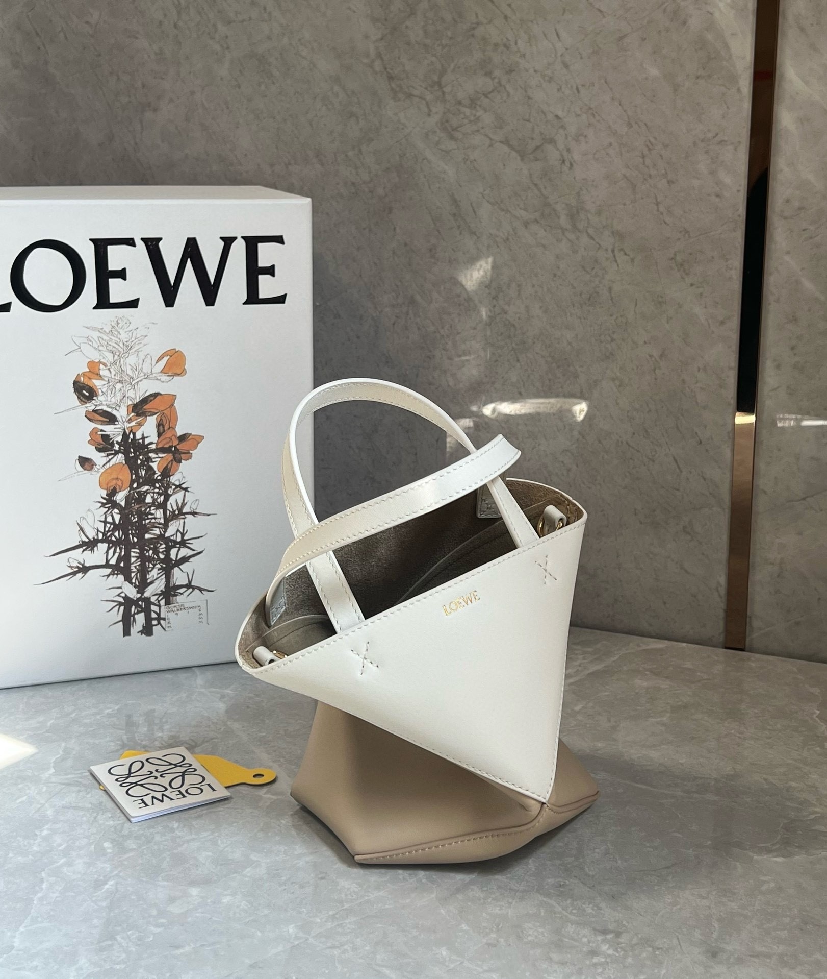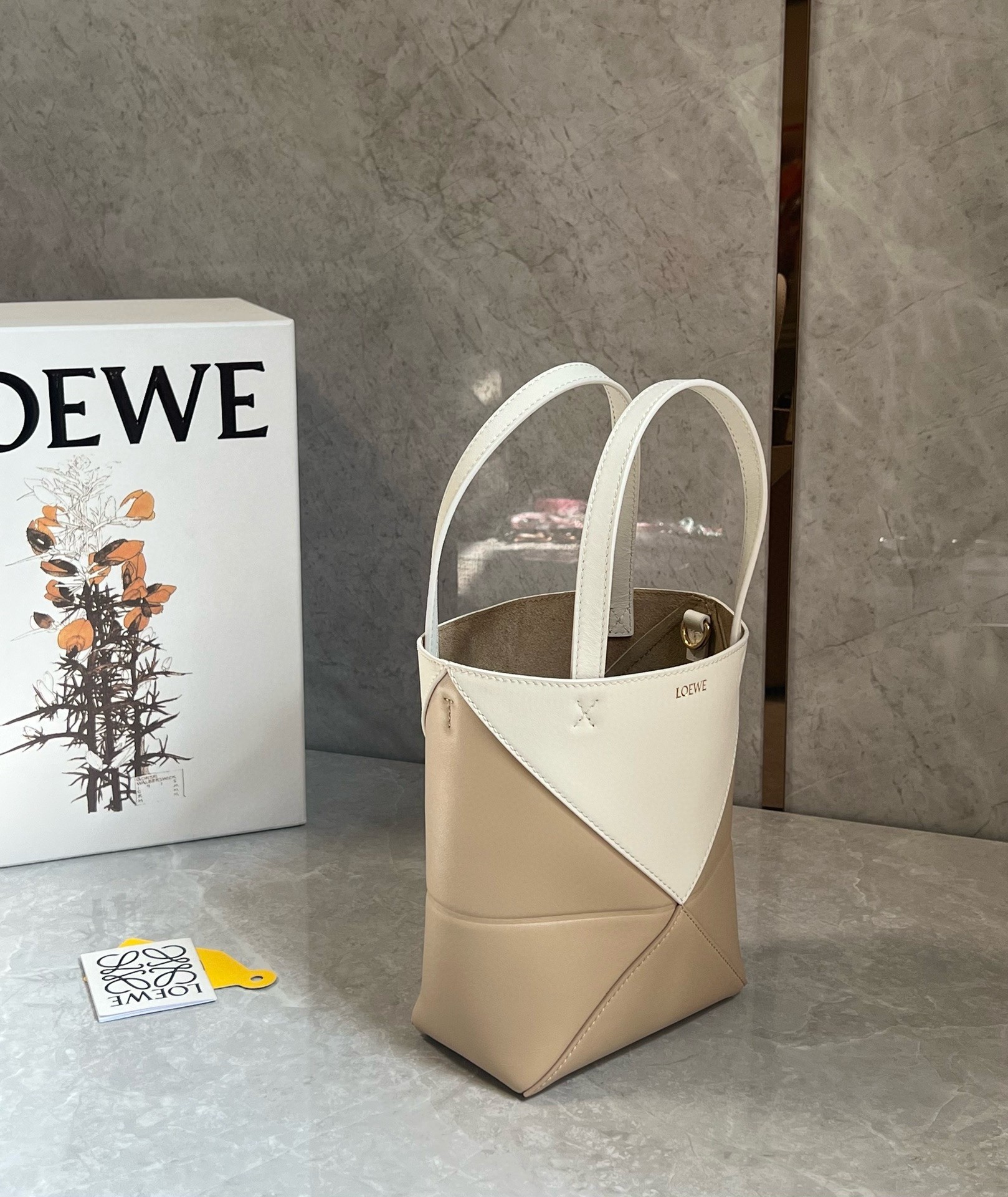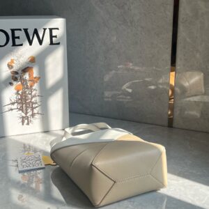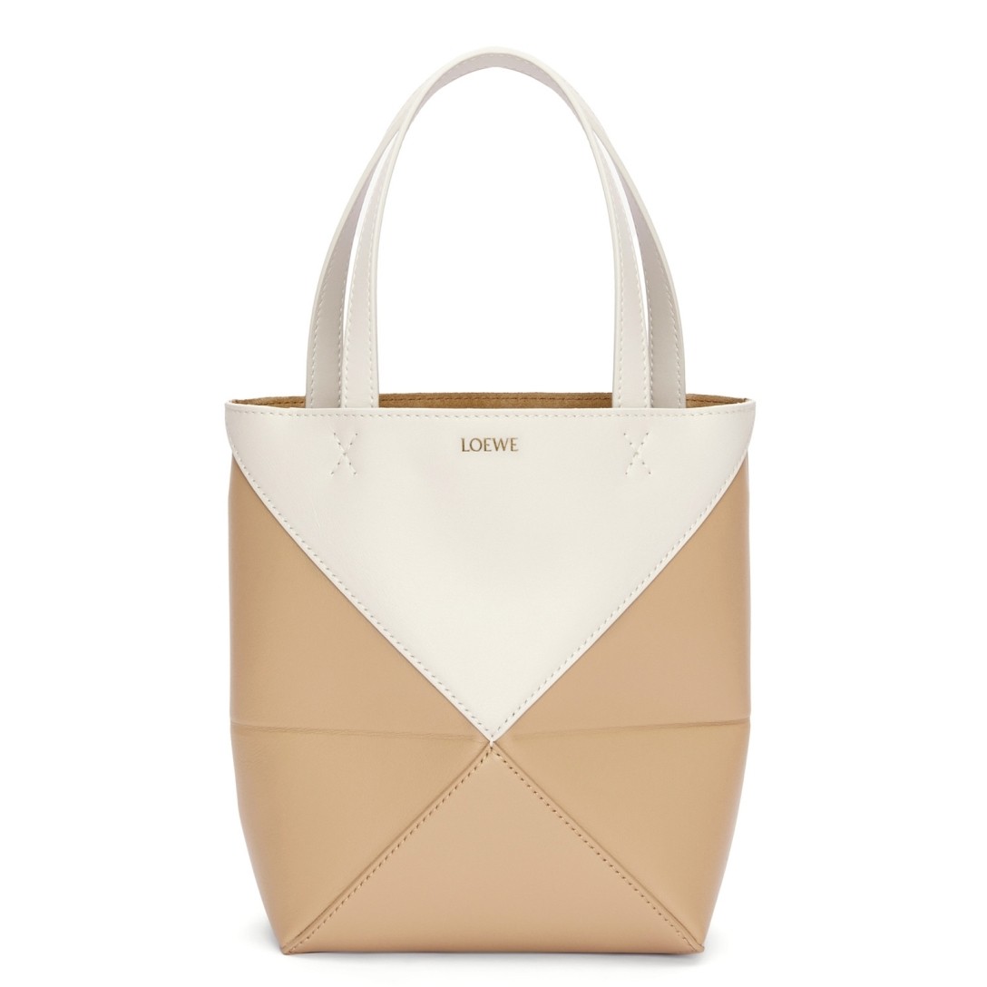 Loewe Mini Puzzle Fold Tote Bag in White/Beige Calfskin