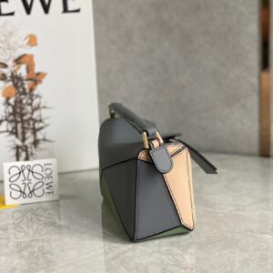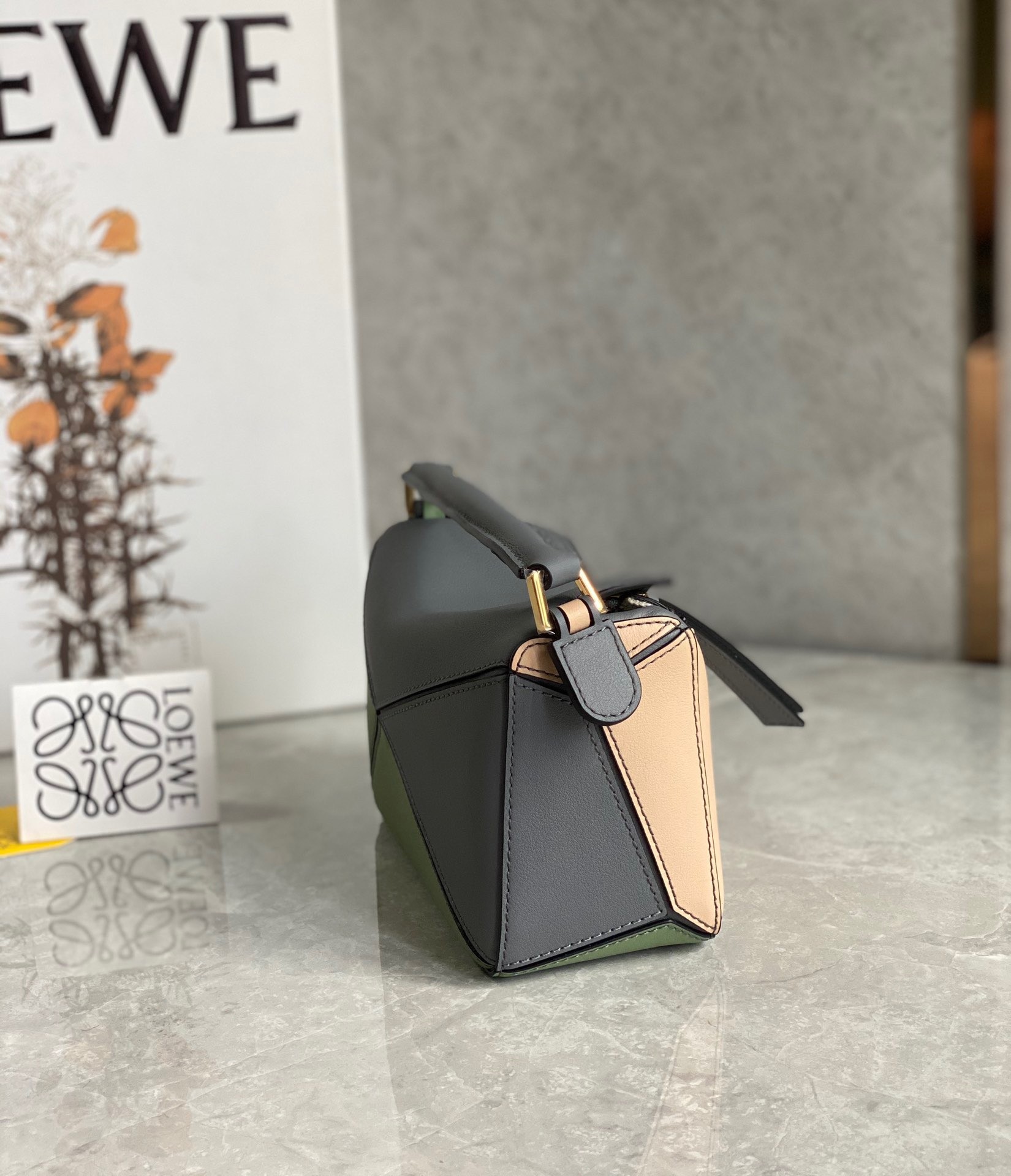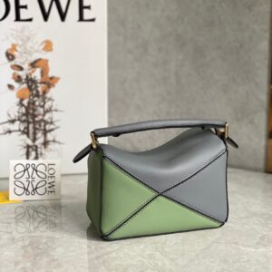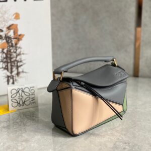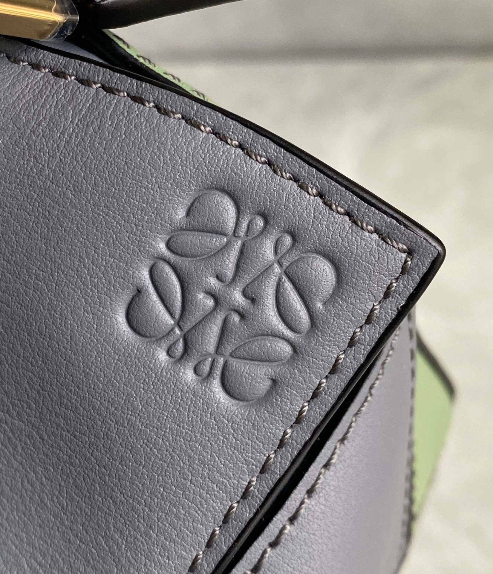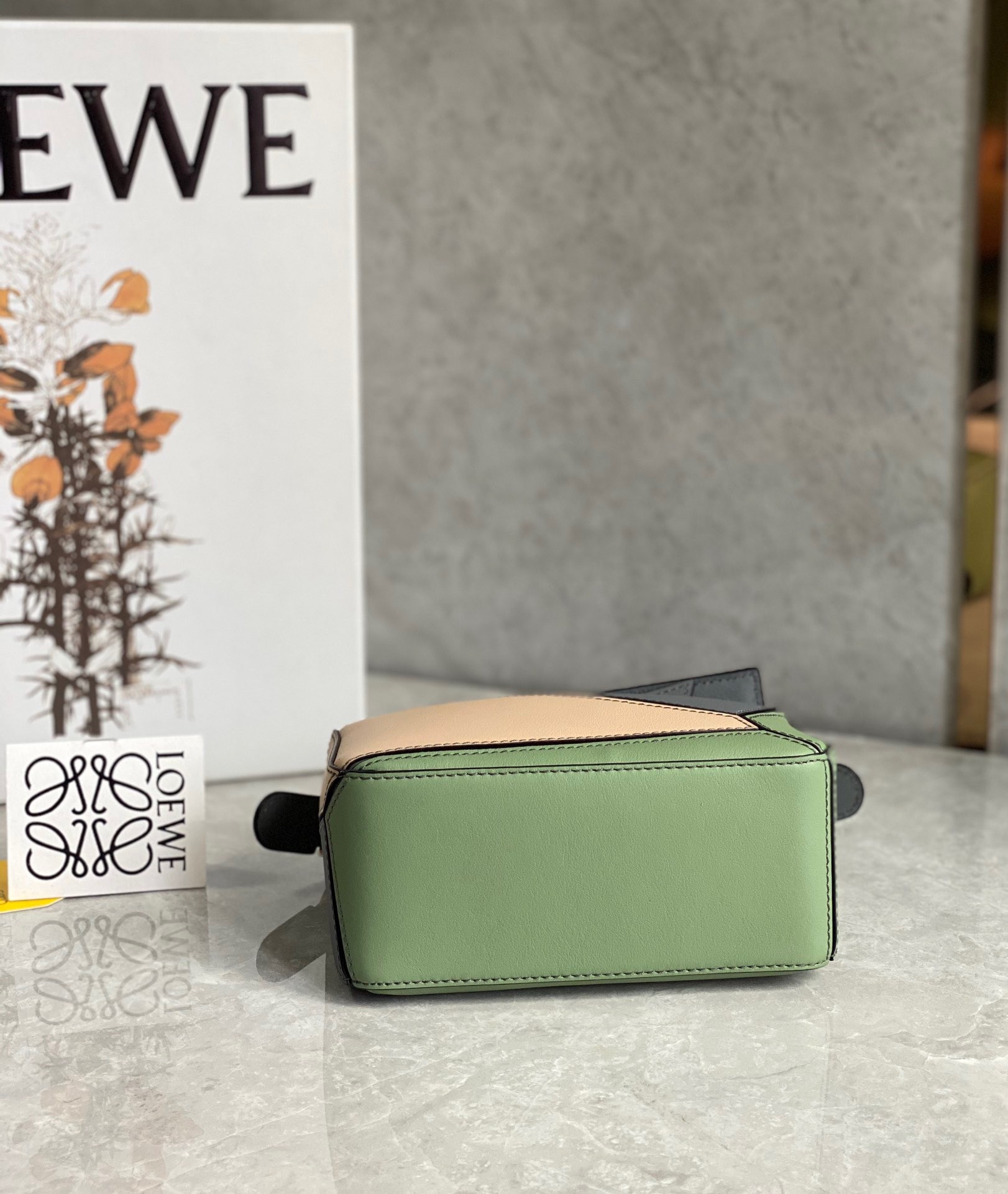 Loewe Puzzle Mini Bag In Asphalt Grey/Nude/Green Calfskin