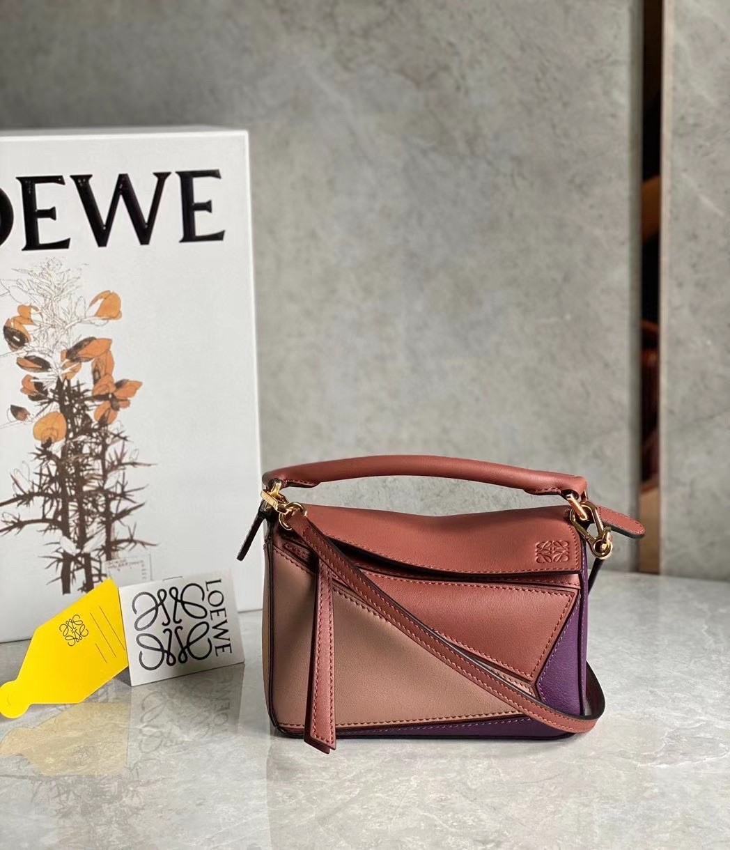 Loewe Puzzle Mini Bag In Purple/Caramel/Blossom Calfskin