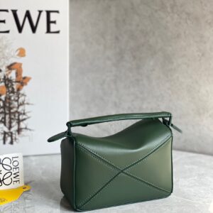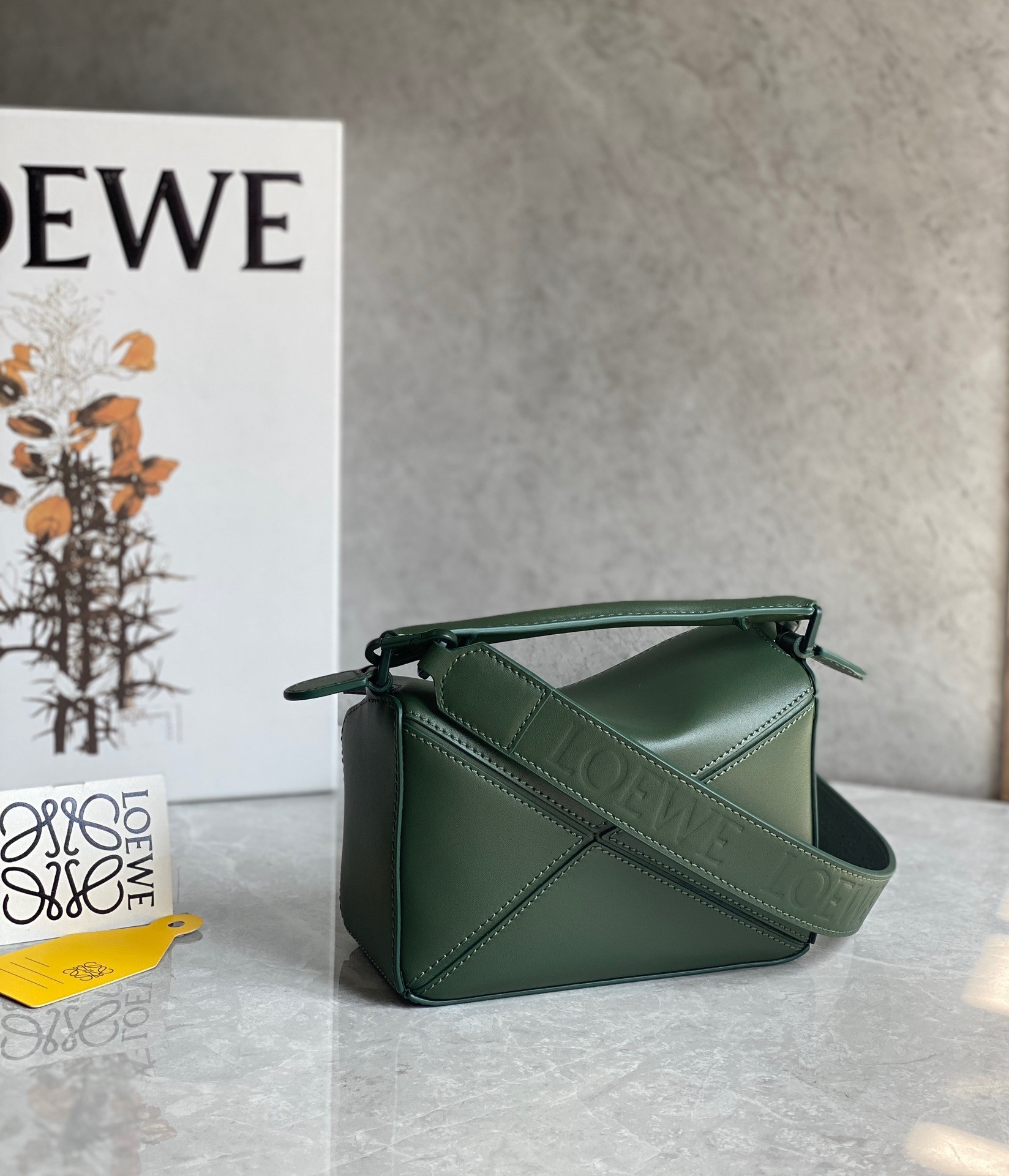 Loewe Puzzle Mini Bag In Vintage Khaki Satin Calfskin