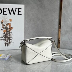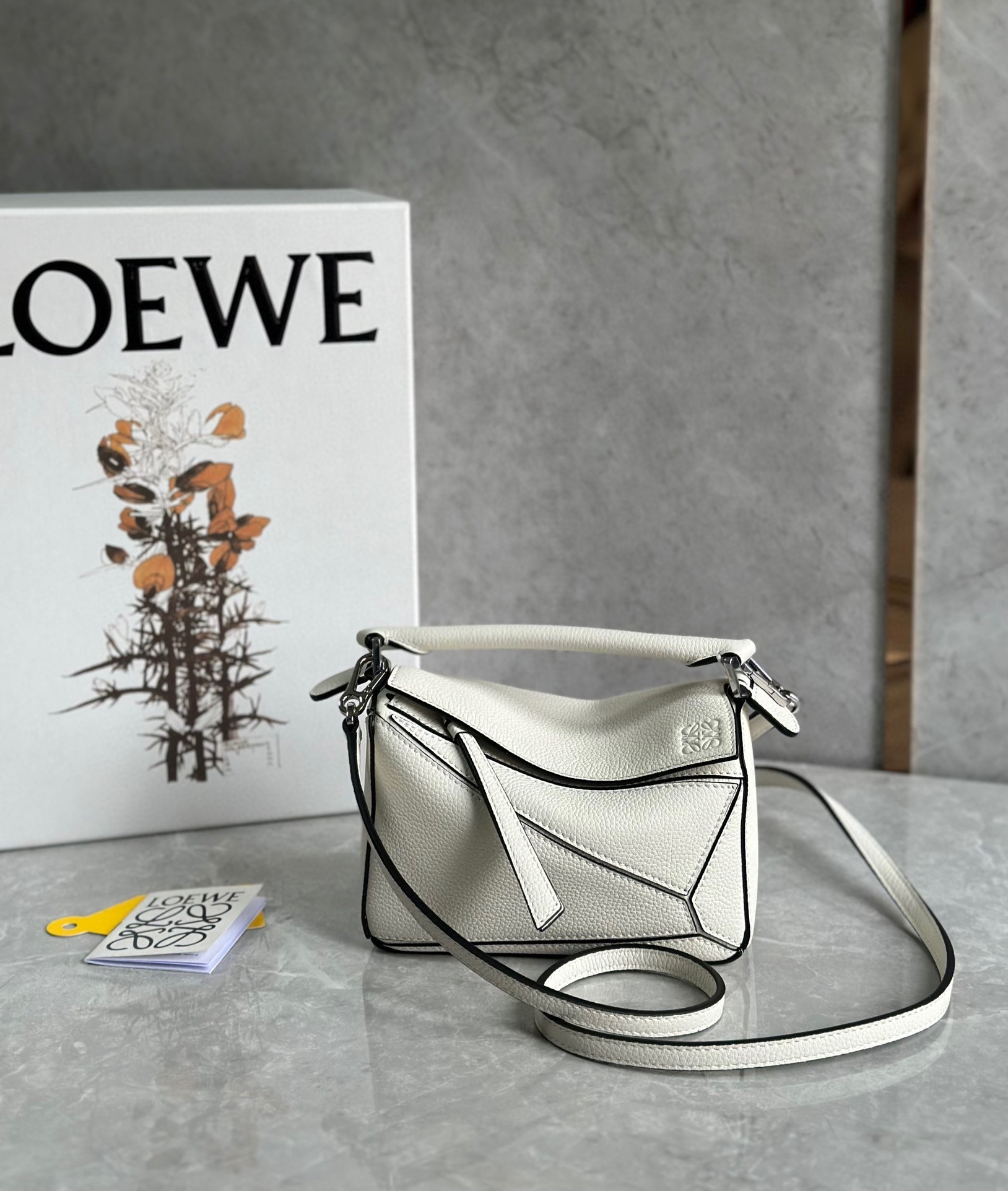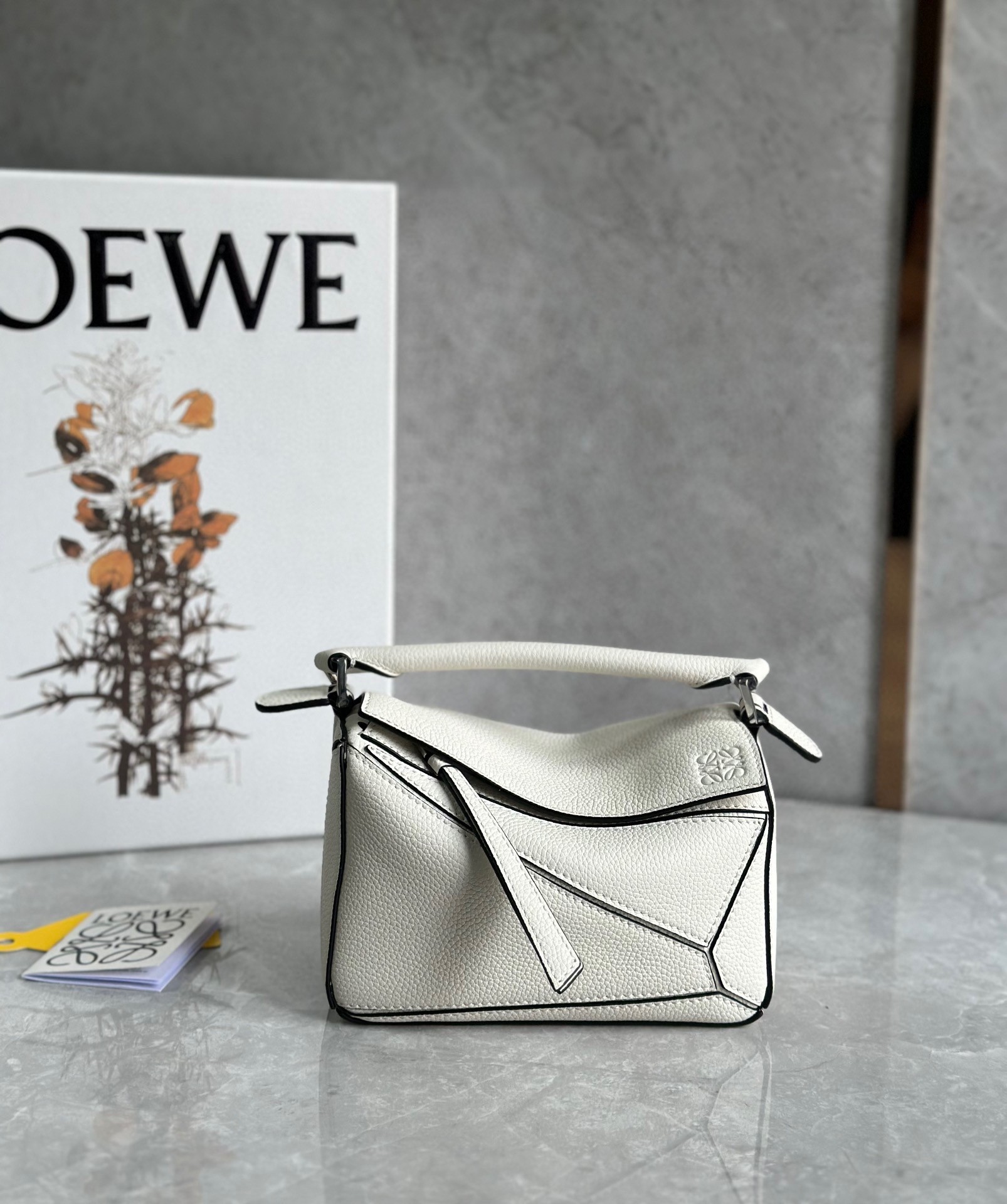 Loewe Puzzle Mini Bag In White Grained Calfskin