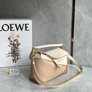 Loewe Puzzle Small Bag in Multicolor Angora and Beige Calfskin