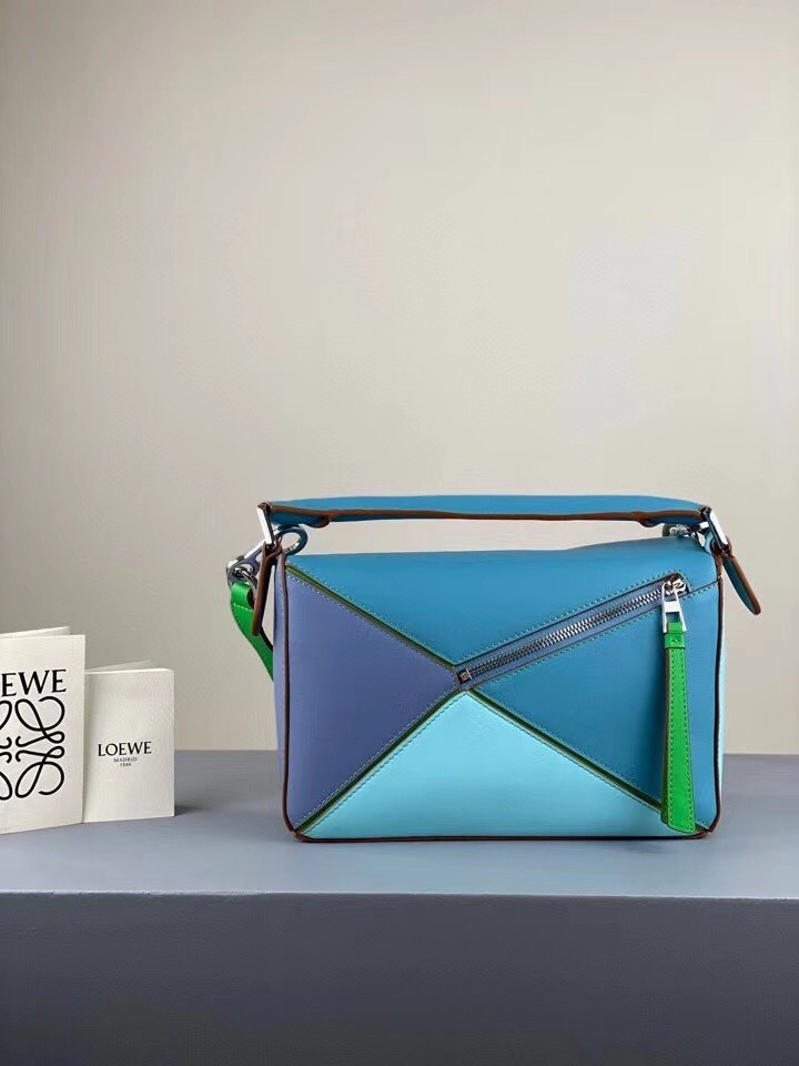 Loewe Small Puzzle Bag In Blue/Blueberry/Lilas Calfskin