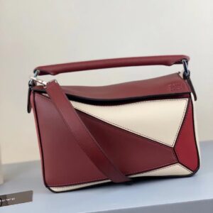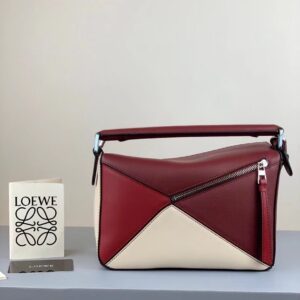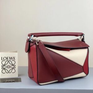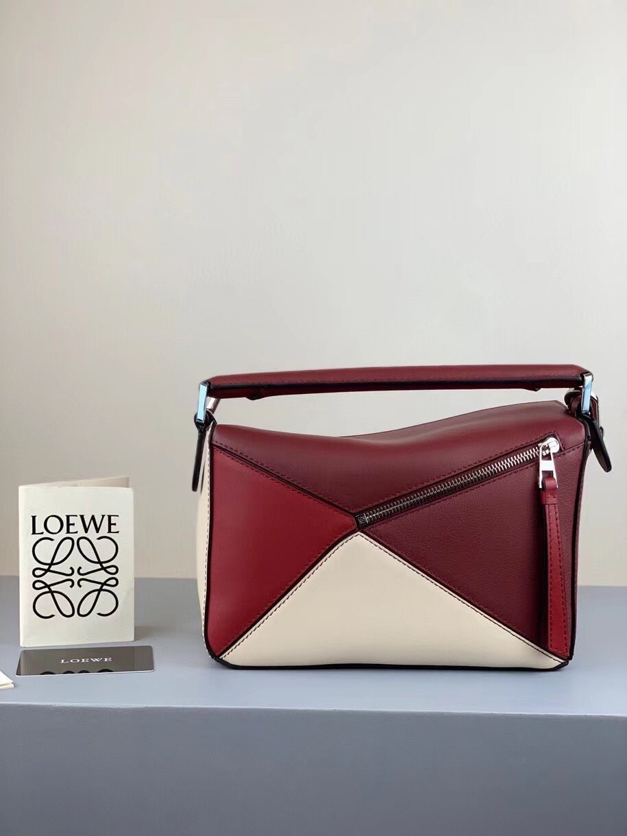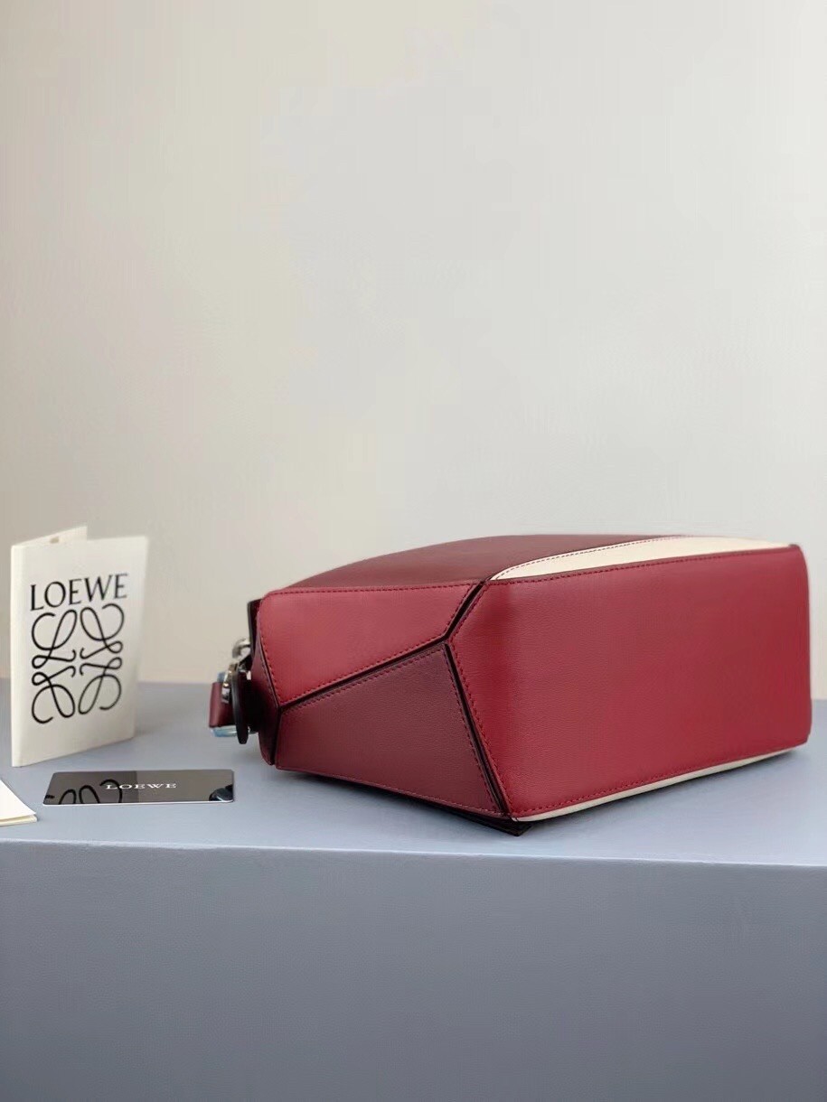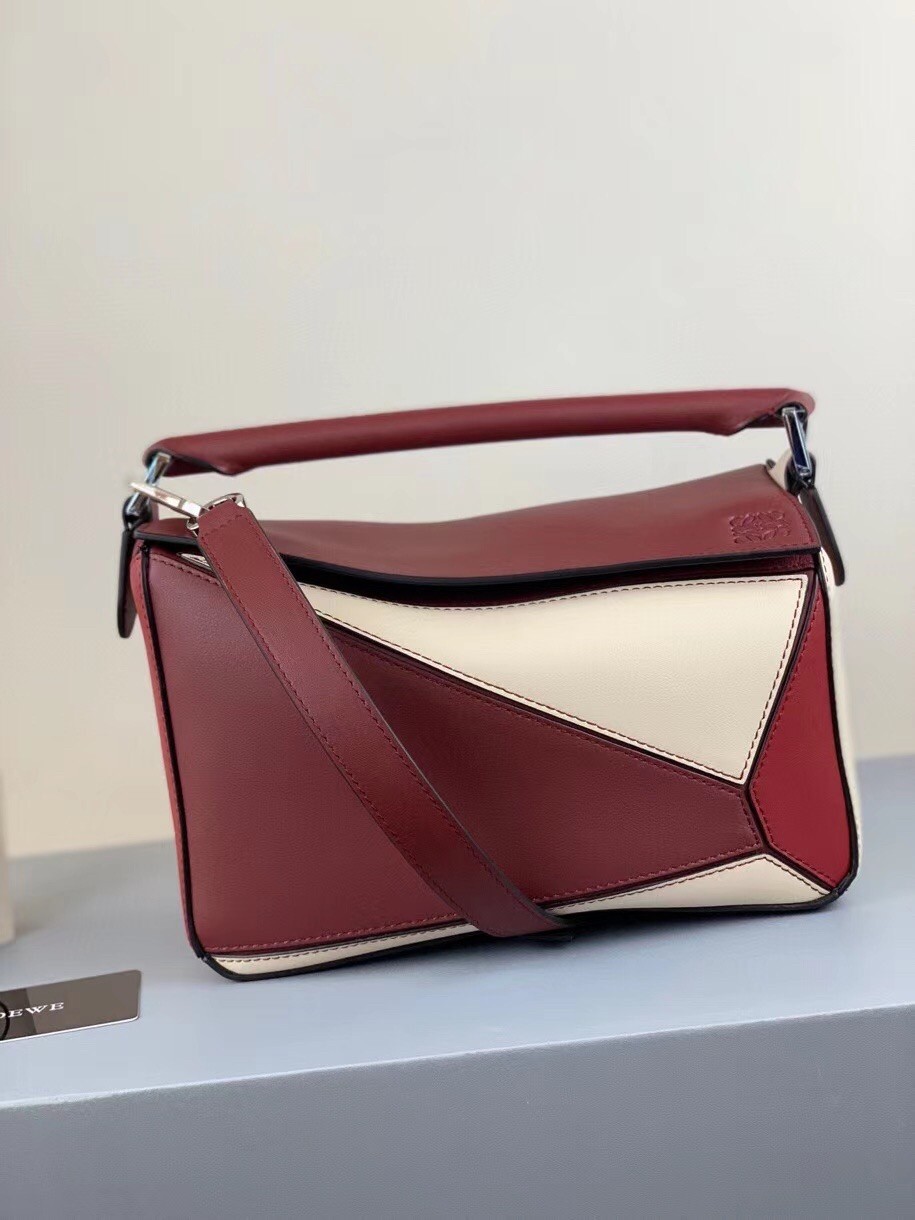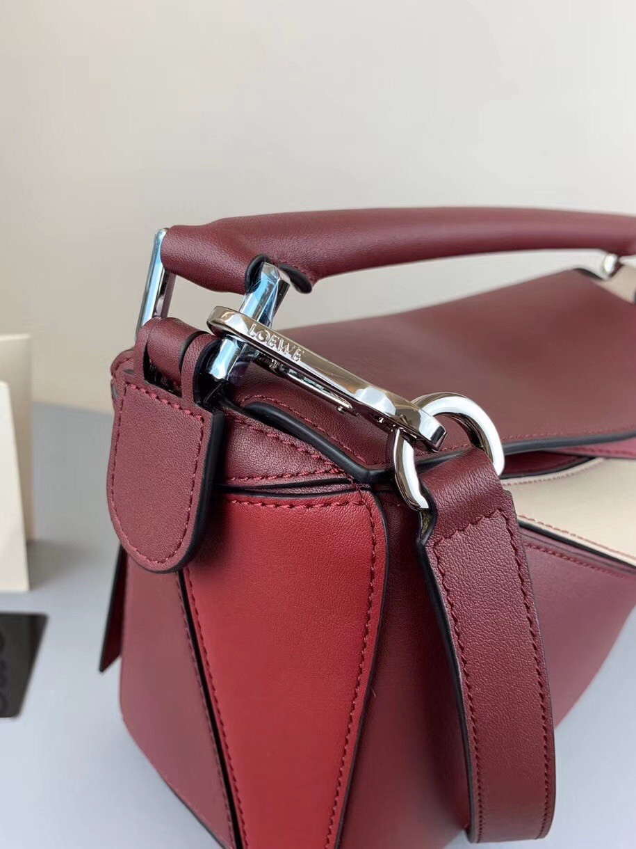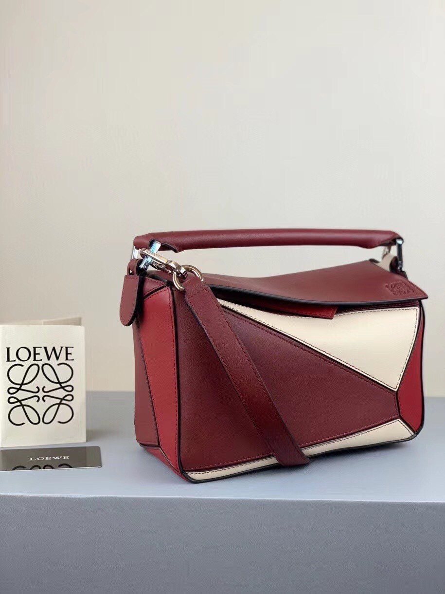Loewe Small Puzzle Bag In Bordeaux/Garnet/White Calfskin