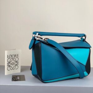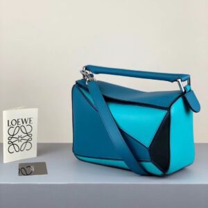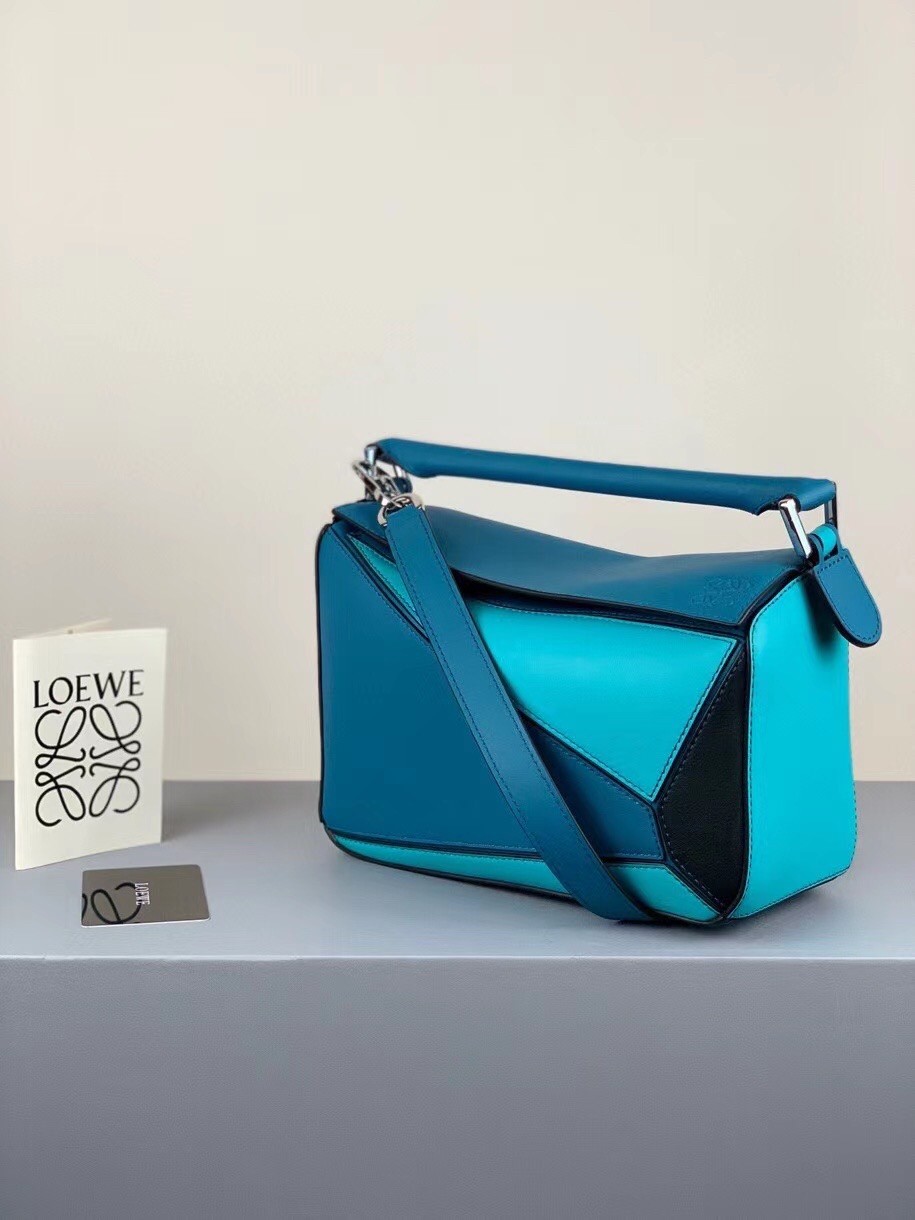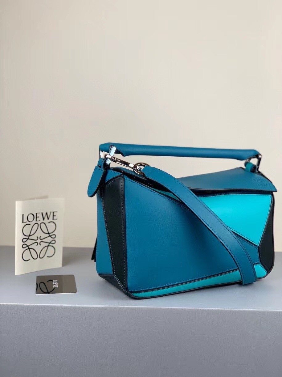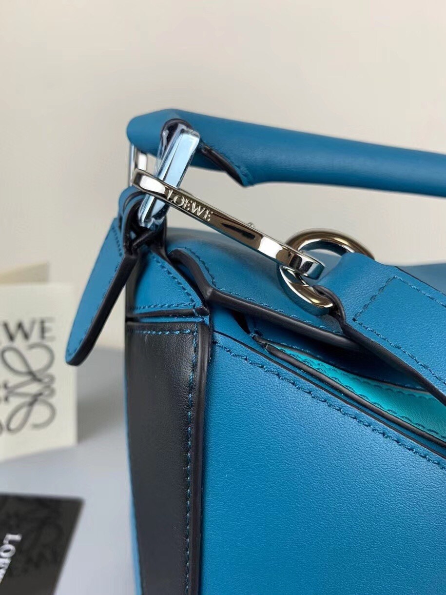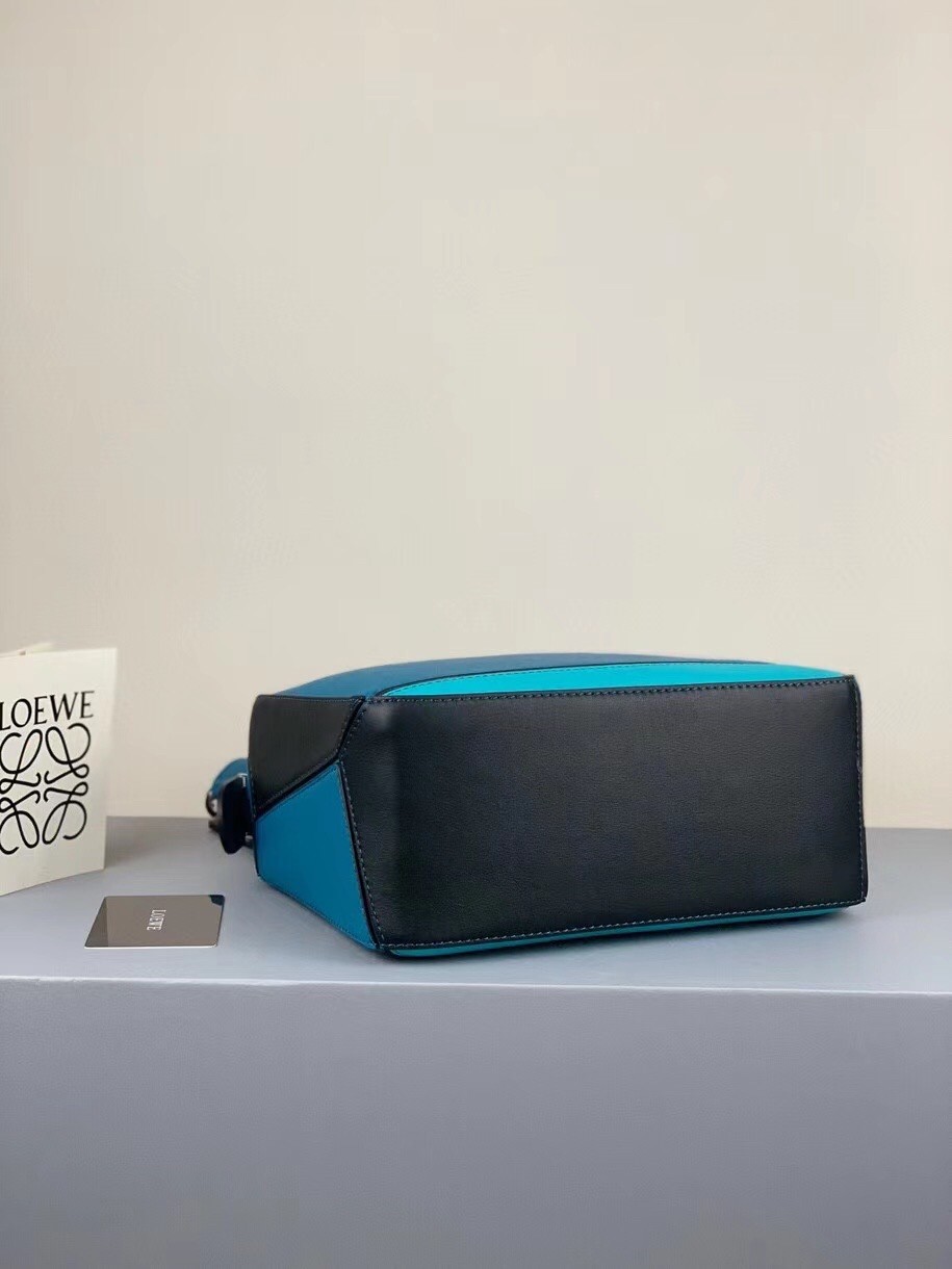 Loewe Small Puzzle Bag In Lagoon/Black/Blue Calfskin