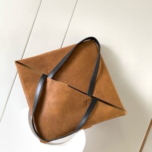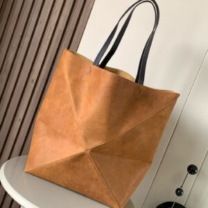 Loewe XL Puzzle Fold Tote Bag in Brown Suede Calfskin