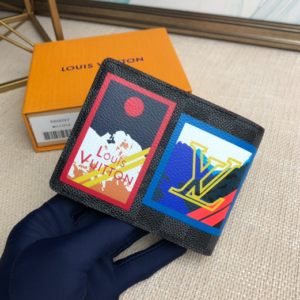 The Louis Vuitton 2018 Winter Multiple Wallet is crafted from Damier Graphite canvas, embellished with the classic LV logo theme patch and full of charming Alpine scenery. Compact and economical practical design, easy to store credit cards, banknotes and receipts.
