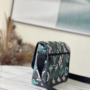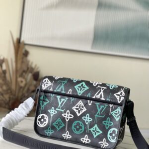 This Archy medium messenger bag is swayed with graffiti art on Monogram Eclipse canvas, redrawing the Monogram pattern, with reinforced corners and leather trim. The badge-shaped closure adds a modern twist, and the zipped rear pocket provides easy access to essentials.