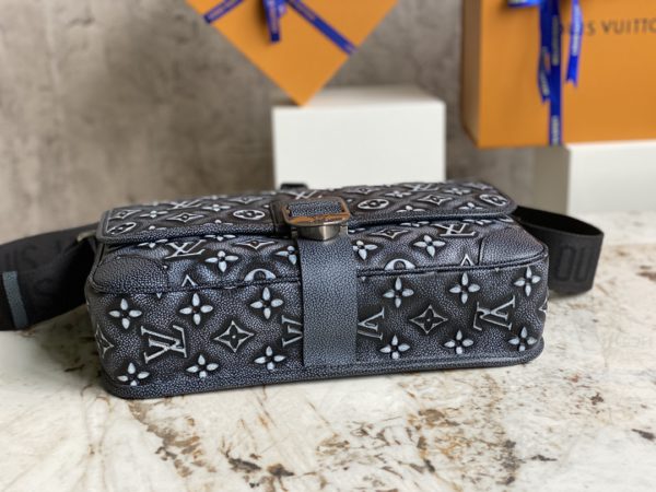 Black men’s messenger bag series ARCHY medium messenger bag with newly embossed pattern This model of Archy medium messenger bag is made of cow leather, and the Monogram pattern is gradually faded out through printing and embossing technology, and it is matched with a reinforced leather bag horn. The detachable and adjustable jacquard shoulder strap presents the Louis Vuitton logo, and its soft shape provides a comfortable carrying experience.