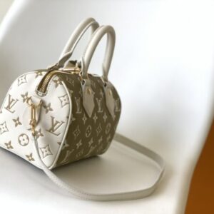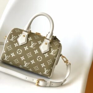 Speedy pillow bag Bandoulière 20 handbag is made of Monogram Empreinte calf leather, the surface pattern has been embossed and printed successively, and it presents an eye-catching look together with the colored leather on the side. Signature construction and rolled handles articulate the brand’s travel heritage, while Paris signature leather nameplates are rich in detail.