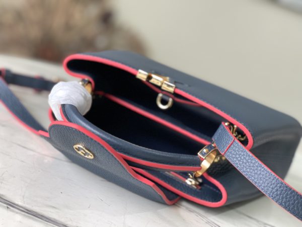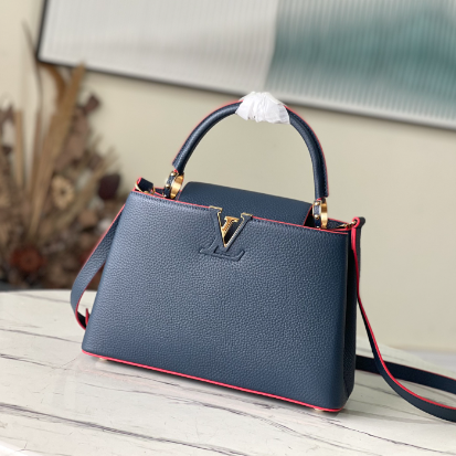 Navy blue gold buckle The first store opened on Capuchin Street in Paris. Capucines handbags are as enduring as the brand and can bring a sense of fashion and sophistication to any look. Full-grain Taurillon leather is combined with rare wide-grain python leather to create a luxurious handbag. Various traditional details are the highlights of the handbag: initials, unique side rings, and delicate Monogram flowers on the flap. Equipped with a top handle, detachable strap and unique cover, it can be carried in a variety of styles to suit different.