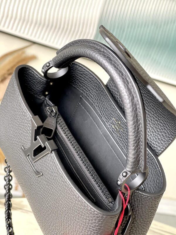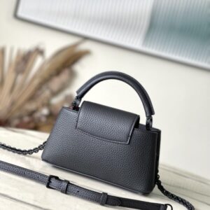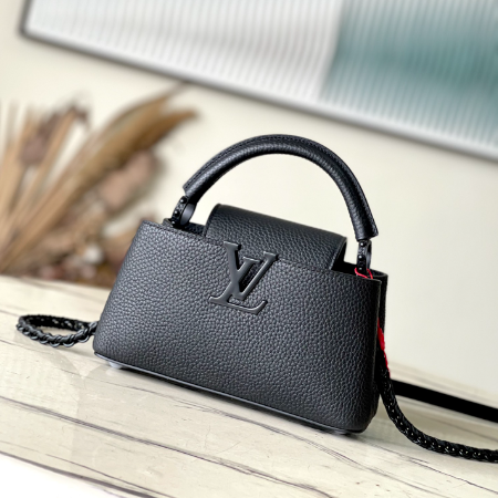 This Capucines BB handbag is made of luxurious cow leather and matte metal parts to convey a modern attitude. It has a new horizontal configuration that brings together classic elements of the same series. The adjustable woven chain is convenient for shoulder or cross-body wear, making it a trend to store mobile phones, short wallets and other small accessories.