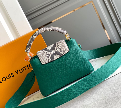 Green with python gold buckle leather is Italian A-grade leather. The quality, hardware, fabric, handwork, oil edge, A-grade production, the picture is consistent with the product, and a full set of packaging.