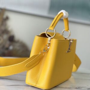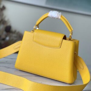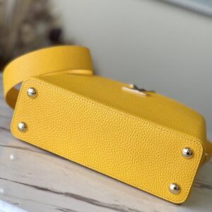 Yellow mother-of-pearl This Capucines small handbag is made of full-grain Taurillon leather, which makes the jewel-like logo shine like malachite, injecting grace into the classic design. The wide leather shoulder strap is suitable for shoulder or cross-body, and it is smart to shuttle between day and night.