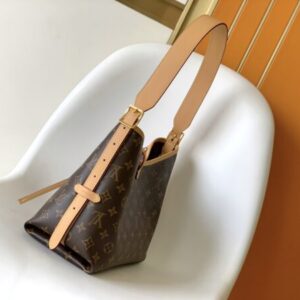 CarryAll small handbag is made of Monogram canvas and leather trim, making it a personal companion for urban life. The roomy silhouette has a neat interior and oversized inner pockets add function. Monogram canvas zipped clutch secured by a leather strap.