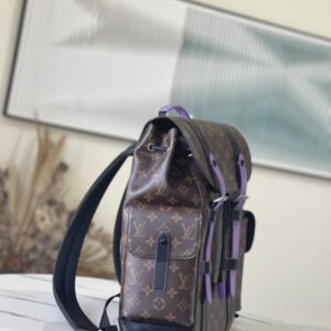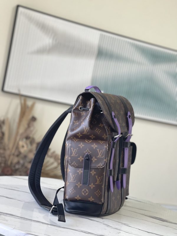 This Christopher Backpack condenses the classic design size, and continues the iconic elements such as side pockets and snap button double shoulder straps. Monogram Macassar canvas with bright calfskin trim and an interior tablet pocket provide a modern way to carry your everyday essentials.