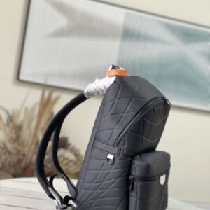 Black full leather backpack series DISCOVERY small backpack Discovery small backpack is made of Taïga leather, reinterpreting the classic campus trend design. A glossy exterior wraps around two interior pockets and an iPad pocket, and two adjustable shoulder straps ensure comfortable carrying.