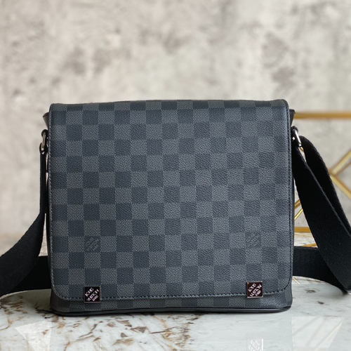 Heiger Men’s Messenger Bag Series DISTRICT Small Men’s Messenger Bag The exquisite District small handbag is small in size, but its capacity is surprising. This stylish tote bag in luxurious Damier Ebène canvas can hold an iPad Mini inside!