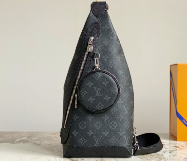 Black flower men’s bag chest bag series DUO shoulder bag Duo shoulder bag is stitched with Monogram canvas and Taiga cow leather, with detachable zipper pockets and zipper side pockets for storing change or other needs The leisurely style interprets the concept of multiple trends and provides an alternative to traditional backpacks.