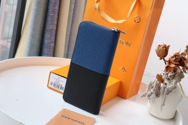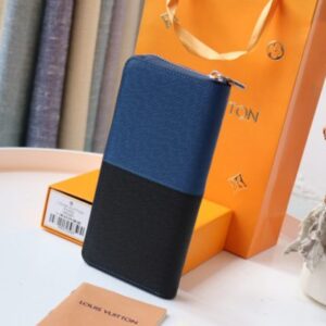 Louis Vuitton Elegant Men’s Vertical Zip Wallet – Blue/Black