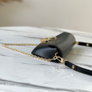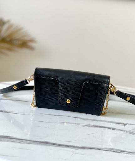 This is an authentic LOUIS VUITTON Epi Padlock On Strap in Black. This chic mini shoulder bag is finely crafted of epi leather in black. This shoulder bag features a black adjustable leather shoulder strap, an optional gold chain strap, and a polished gold press padlock closure. The fold over top opens to a black microfiber interior with a patch pocket.