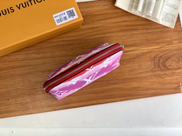 This cosmetic bag joins the Escale accessories and leather goods collection for summer 2020. Featuring a new tie-dye print in Monogram Giant canvas, it’s roomy, with a wide zip opening and a washable interior for everyday wear or on-the-go.