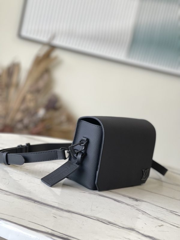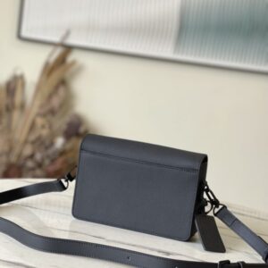 Black full leather men’s messenger bag series Flap mini handbag is made of calf leather, and its cut corners are inspired by the creation of the old Air France letterhead by the LV Aerogram series. The details are marked with LV letters, the magnetic buckle flap opens ample compartments, and the adjustable shoulder strap is easy to carry.