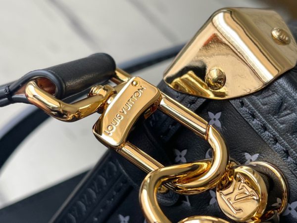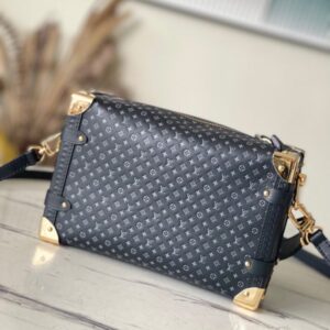Black full leather bag inspired by suitcase. The overall use is the classic monogram, the bag is surrounded by metal edge design, retains the signature hard box technology, perfectly blends leather and metal, soft and hard, not only shows the softness of the leather but also incorporates a bit of laziness and casualness .
