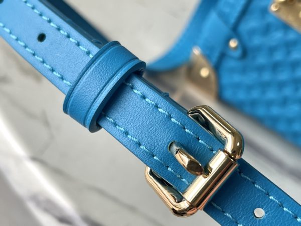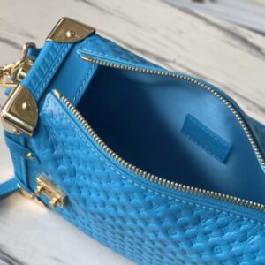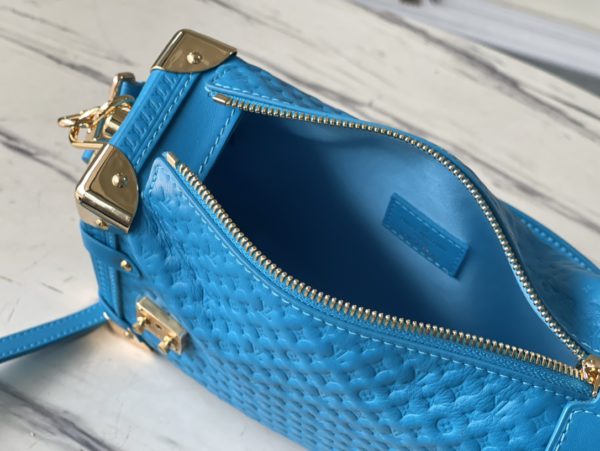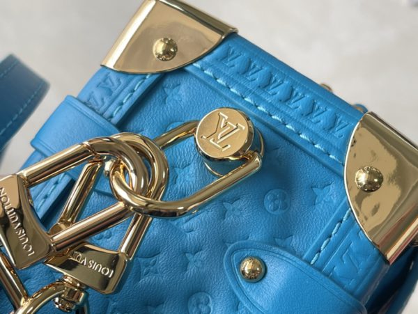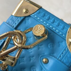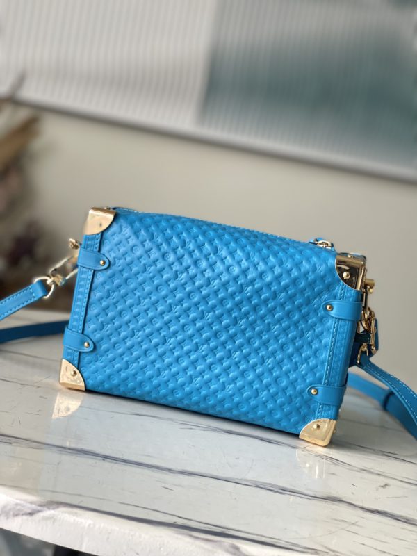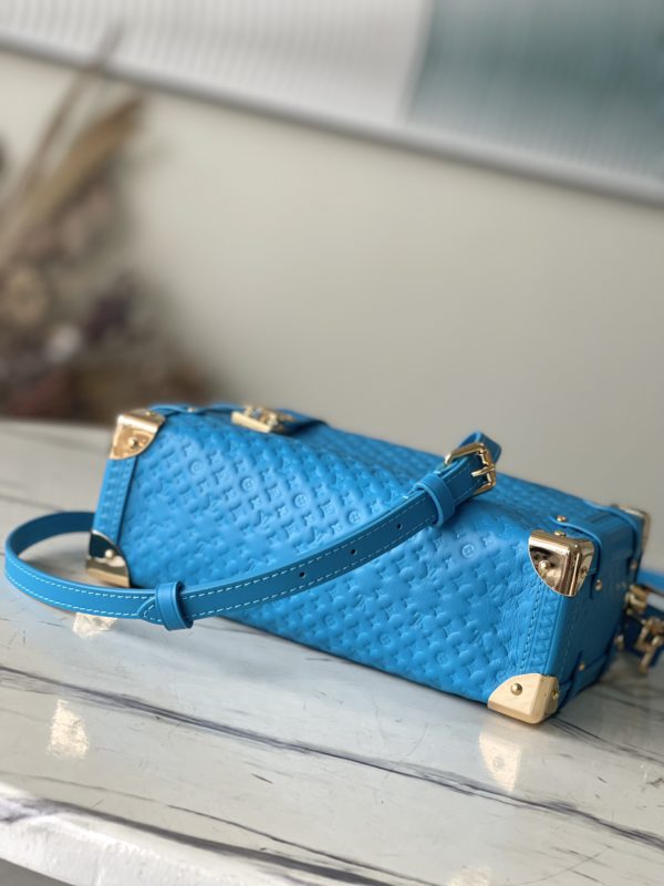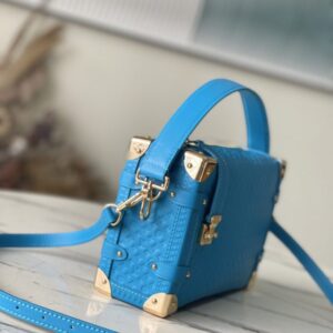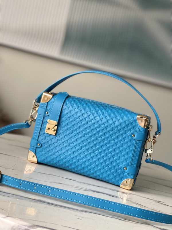Blue full leather bag inspired by suitcases. The overall use is the classic monogram, the bag is surrounded by metal edge design, retains the signature hard box technology, perfectly blends leather and metal, soft and hard, not only shows the softness of the leather but also incorporates a bit of laziness and casualness .