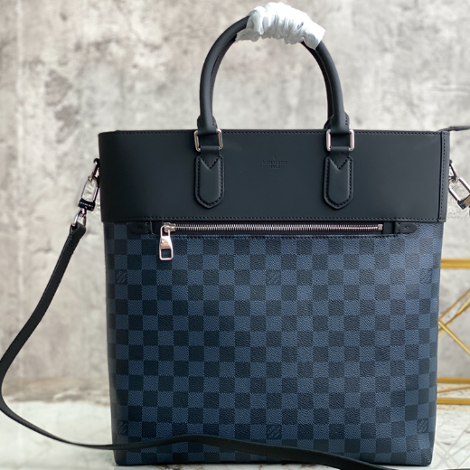 Blue grid briefcase series combines contemporary elegance and functionality, this Newport shopping bag is the ideal bag for modern active men. The epitome of urban chic, the roomy interior is crafted in classic Damier Cobalt canvas and sturdy leather, with multiple interior pockets for all your essentials. The top handle and detachable, length-adjustable shoulder strap give you a variety of carrying options.