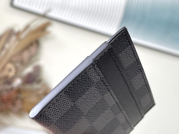 Haig This model adopts the new Monogram Eclipse coated canvas material card clip with a beautiful and fashionable style, small size, and can be easily put into the pocket. Features a center pocket and four slots for credit cards, plane and bus tickets, boat, and business cards.