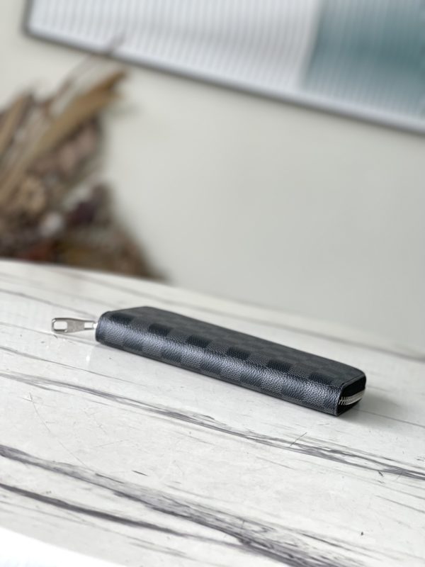 Haig ZIPPY VERTICAL Wallet This men’s vertical zip wallet is elegant in durable Damier Graphite canvas. Multiple practical pockets and compartments easily hold cash, credit cards, and change.