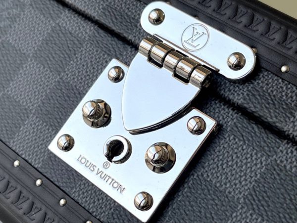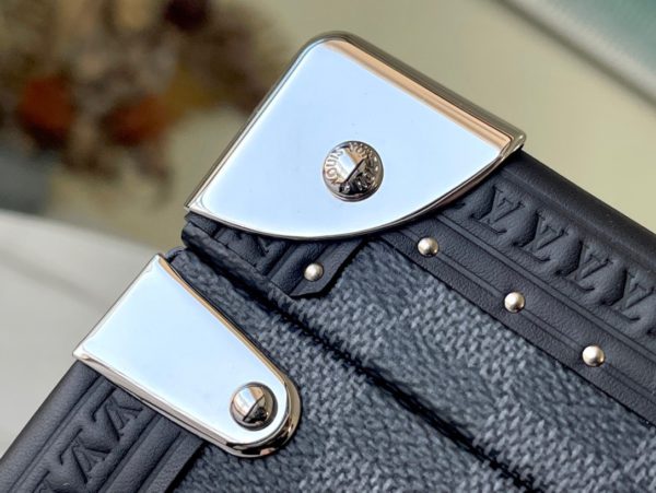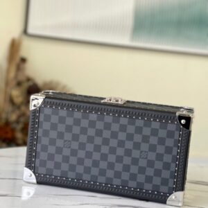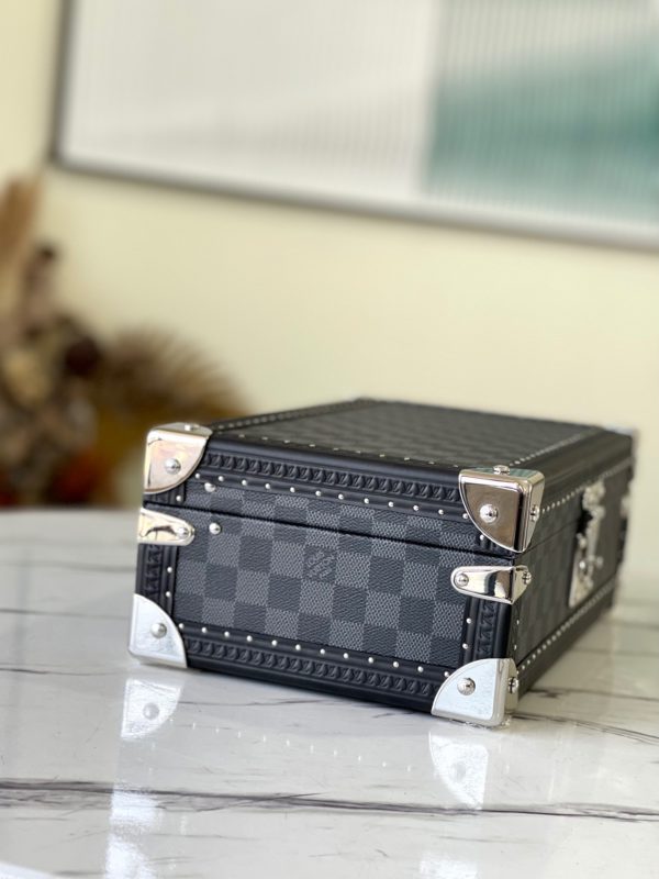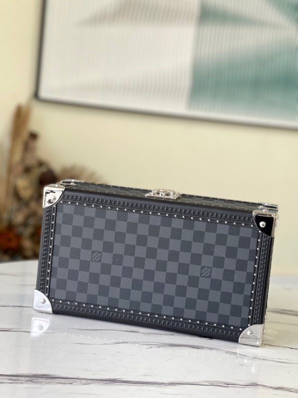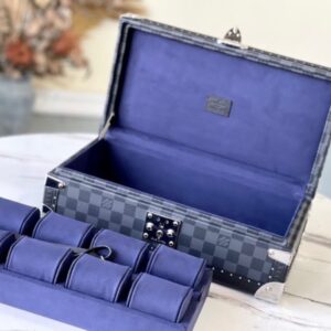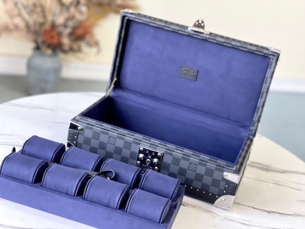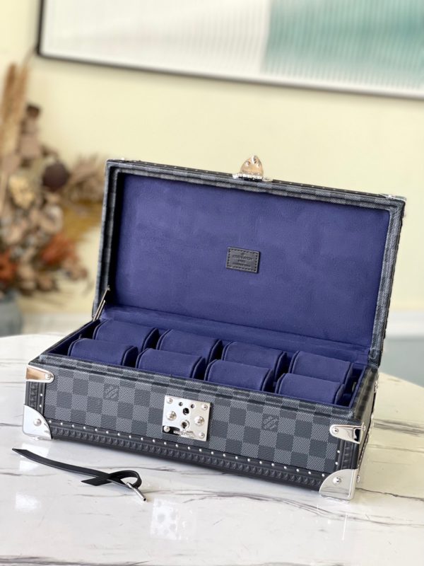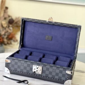 Heiger Blue This 8-piece watch case is made of classic Damier Garphite canvas. It stores conveniently from a safe to a suitcase and has a removable tray for stashing other valuables.