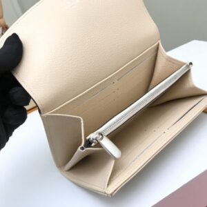 The delicate perforation depicts the Monogram pattern on the surface of the soft calfskin, reflecting the elegant appearance of the Iris wallet. The gentle and rounded flap hides a spacious compartment, a zipper coin pocket and multiple card slots under it.