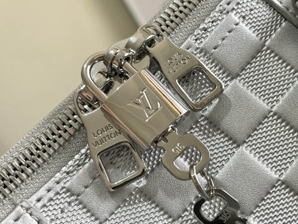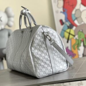 KEEPALL BANDOULIèRE 50 travel bag Virgil Abloh looks back at the urban nightlife of the 1990s, giving the Glitter capsule series Keepall Bandoulière 50 travel bag a shiny luster, revealing the dazzling style of a disco ball. Full leather embossed silver travel bag oo[handshake][handshake] calf leather presents the classic Damier checkerboard pattern, with non-grain leather trim.